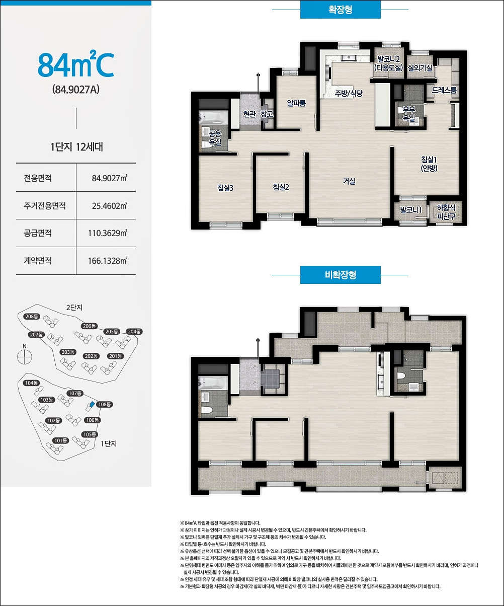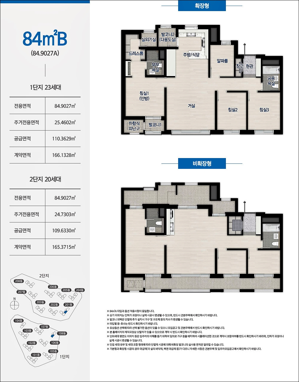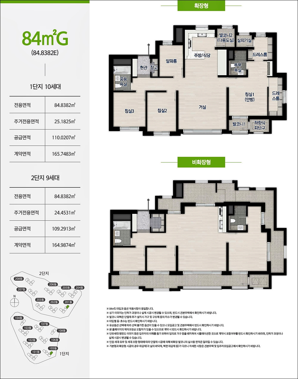 84A, 84B, 84C, 84D 4가지 타입은 구조가 거의 동일하다고 보셔도 될것같습니다. 판상형 모델이고 알파룸까지 방이 총 4개인 모델입니다. 단 알파룸은 취향에 따라 변형 하여 사용이 가능합니다.