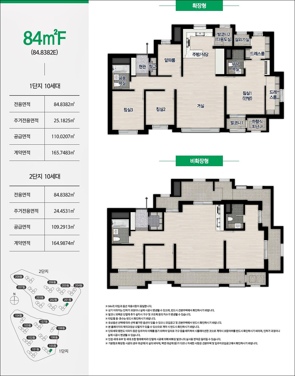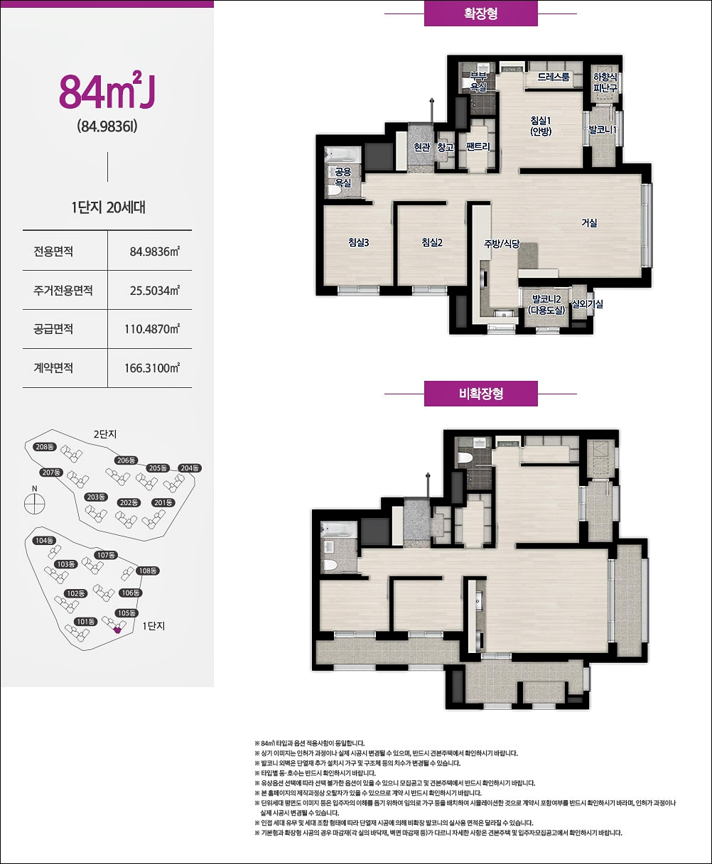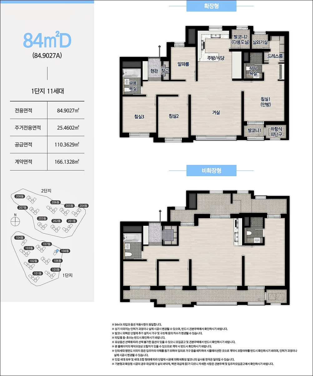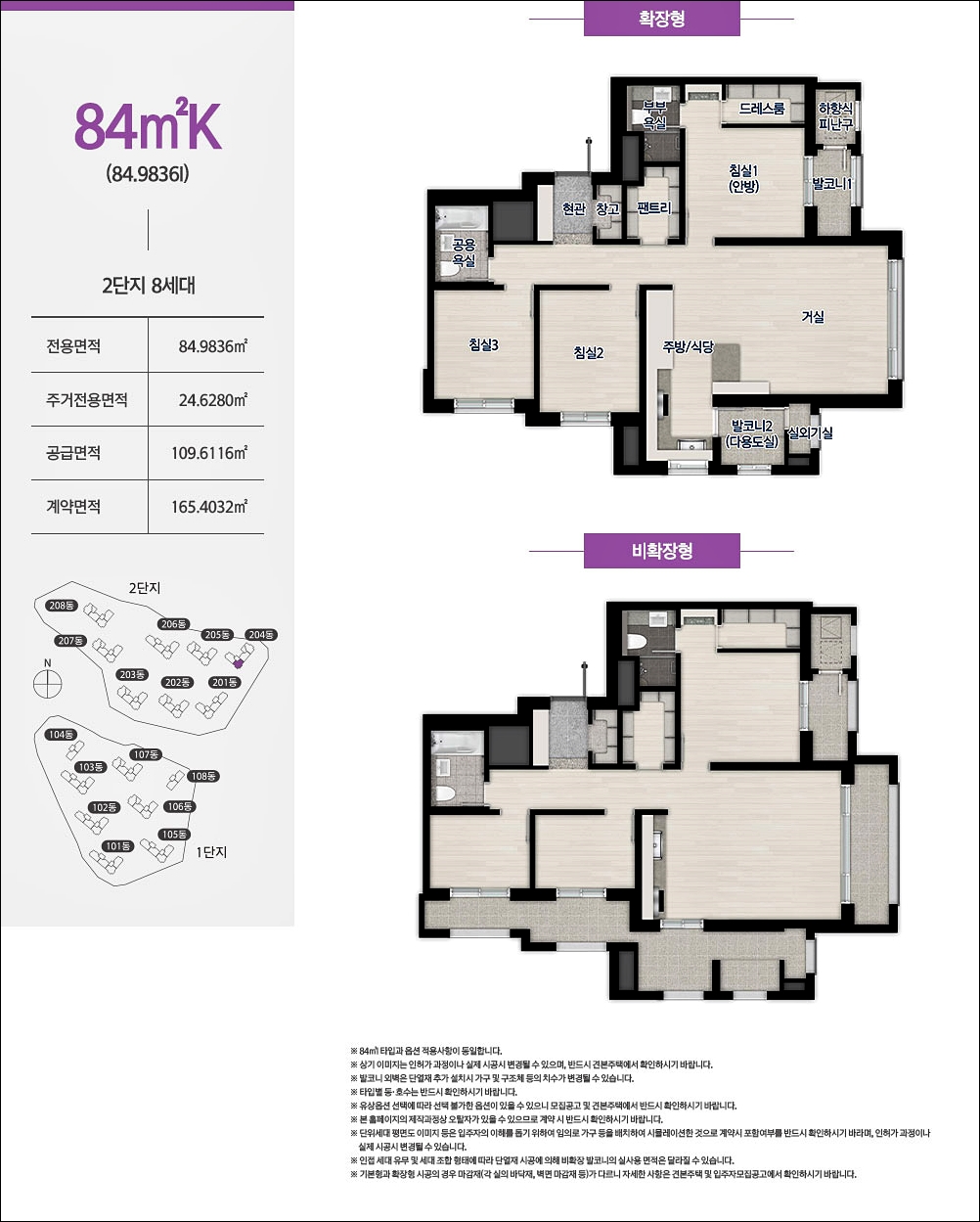 84A, 84B, 84C, 84D 4가지 타입은 구조가 거의 동일하다고 보셔도 될것같습니다. 판상형 모델이고 알파룸까지 방이 총 4개인 모델입니다. 단 알파룸은 취향에 따라 변형 하여 사용이 가능합니다.