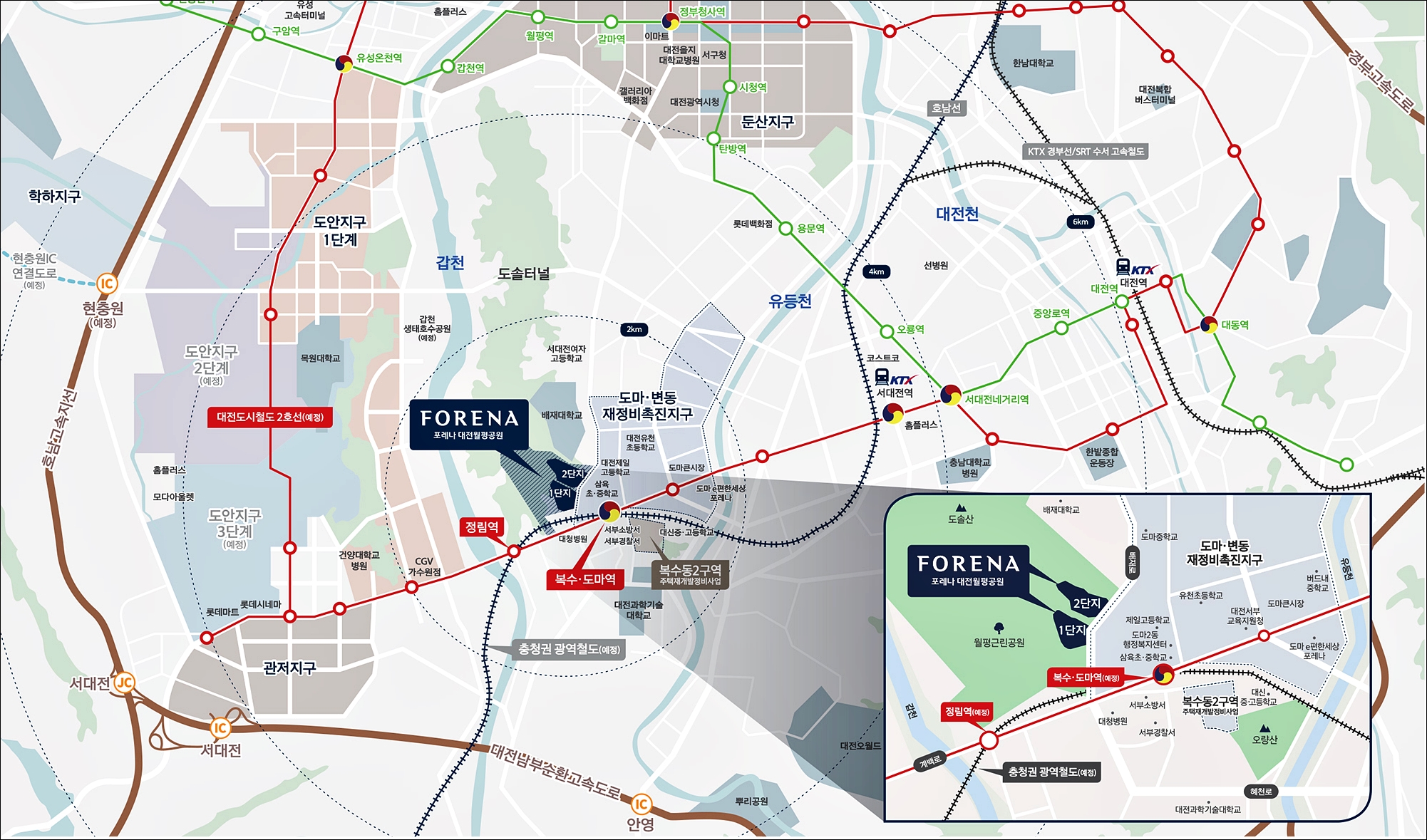 한화포레나 대전월평공원 입지 및 분석을 해보겠습니다. 해당 사업지는 트램2호선 (예정) 예정이 되있고 충청권 광역철도 (예정) 정림역이 개발 예정 입니다. 안영IC, 서대전역 등이 근거리에서 이용이 가능합니다. 학군을 보겠습니다 도보권내 유천초등학교, 삼육초.중 , 대신중, 대신고 등 가까운 위치에 학교들이 구성되어 있습니다. 또한 단지 내 국공립 어린이집이 들어오기에 자녀를 키우시는 분들은 관심을 가져볼만한 내용이라고 생각듭니다. 주변에 편의시설도 두루 갖추고 있습니다. 대학병원, 도마큰시장, 홈플러스, 코스트코 등 가까운 거리에 생활편의 시설이 잘 자리잡고 있습니다. 마지막 으로 월평근린공원을 단지가 품고있는 숲세권 단지라 쾌적한 삶이 예상됩니다.