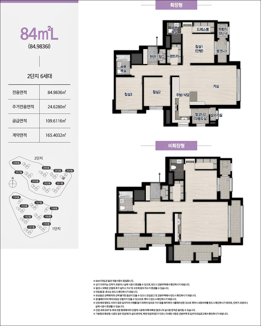 84H 모델부터 84L 모델 까지는 타워형 구조라고 보실수 있습니다. 여기에 안방 대형 드레스룸 설치가 가능합니다. 타입이 여러가지로 분리되어 있어서 혼란스러우실수 있지만 각각의 세대수는 많지가 않습니다.