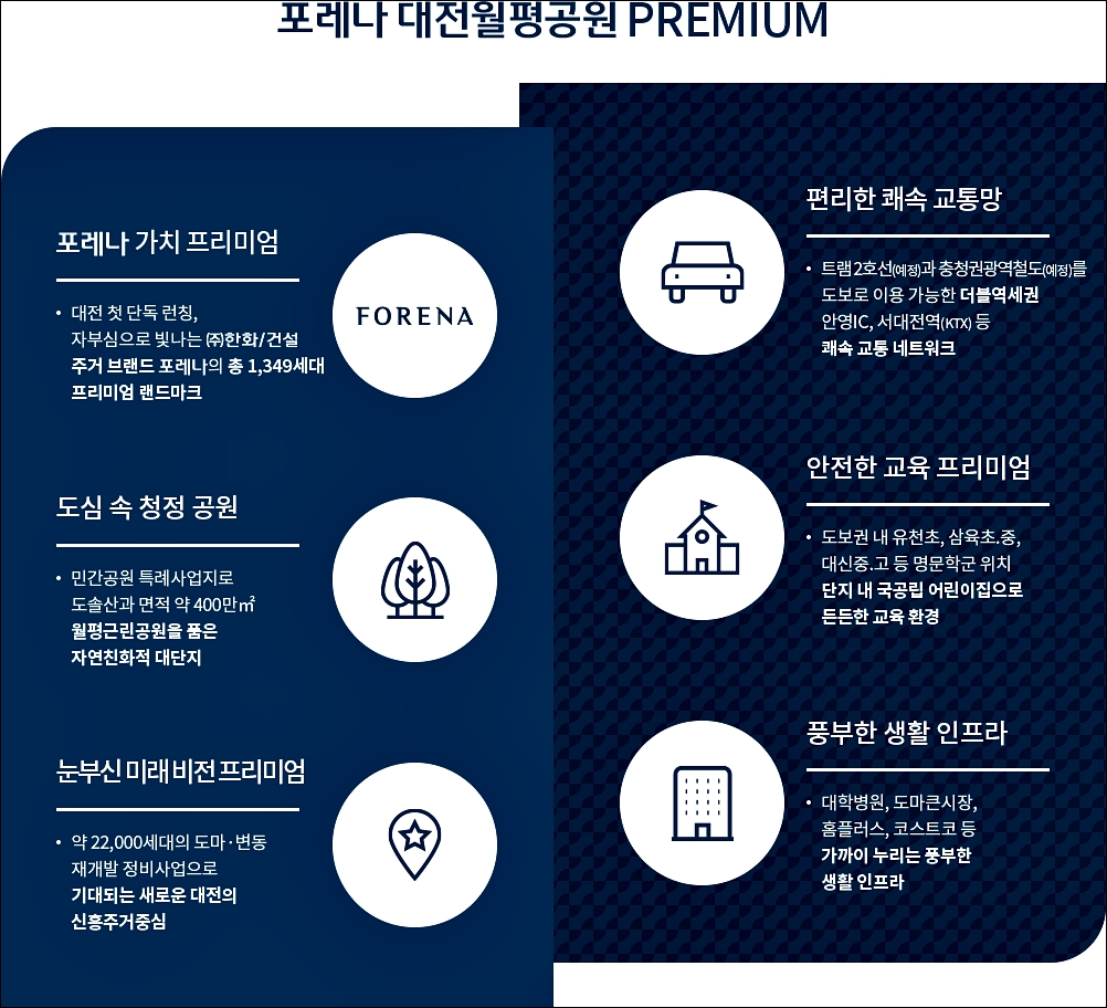 한화포레나 대전월평공원 분양정보 안내를 도와드리겠습니다. 분양가 안내, 모델하우스 위치 문자전송 등, 빠른 상담을 원하시면 대표번호로 문의주시기 바랍니다.