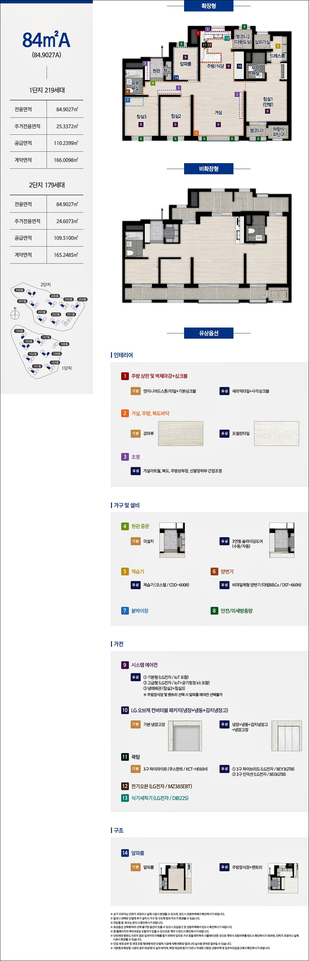 84A, 84B, 84C, 84D 4가지 타입은 구조가 거의 동일하다고 보셔도 될것같습니다. 판상형 모델이고 알파룸까지 방이 총 4개인 모델입니다. 단 알파룸은 취향에 따라 변형 하여 사용이 가능합니다.