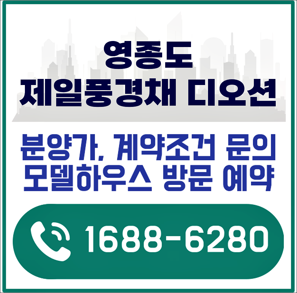 영종도 제일풍경채 디오션 분양정보 안내를 도와드리겠습니다. 분양가 문의, 모델하우스 위치 안내 등 빠른 상담을 원하시는 분들은 대표번호로 연락주세요. 전문 상담원이 친절히 안내를 도와드립니다.
