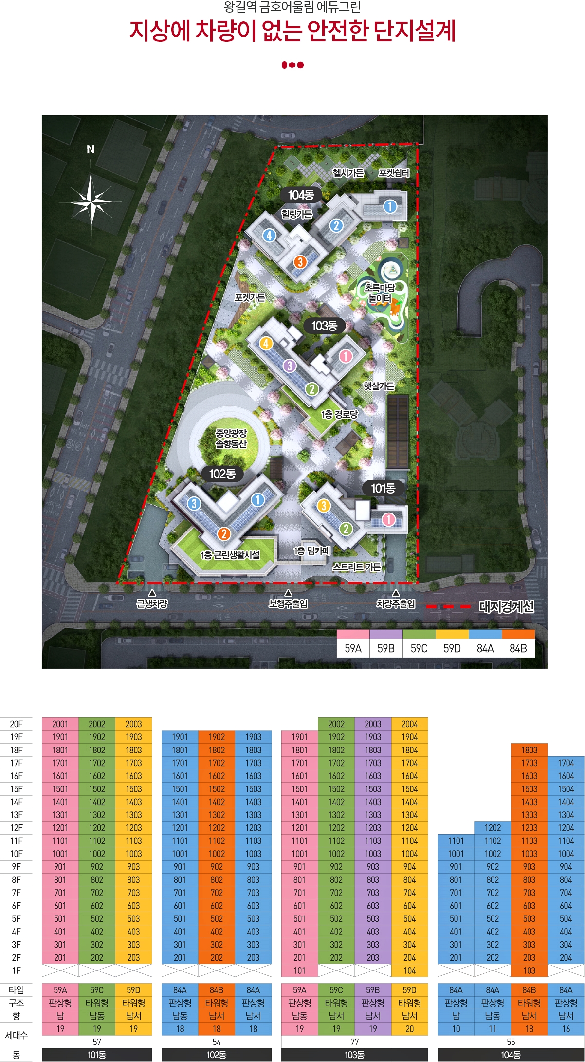 요즘 지어지는 아파트들이 지상에 차량이 없는 단지를 선호하는데 왕길역 금호어울림 에듀그린 역시 지상에 차량이 진입할수 없게끔 설계가 되었습니다.