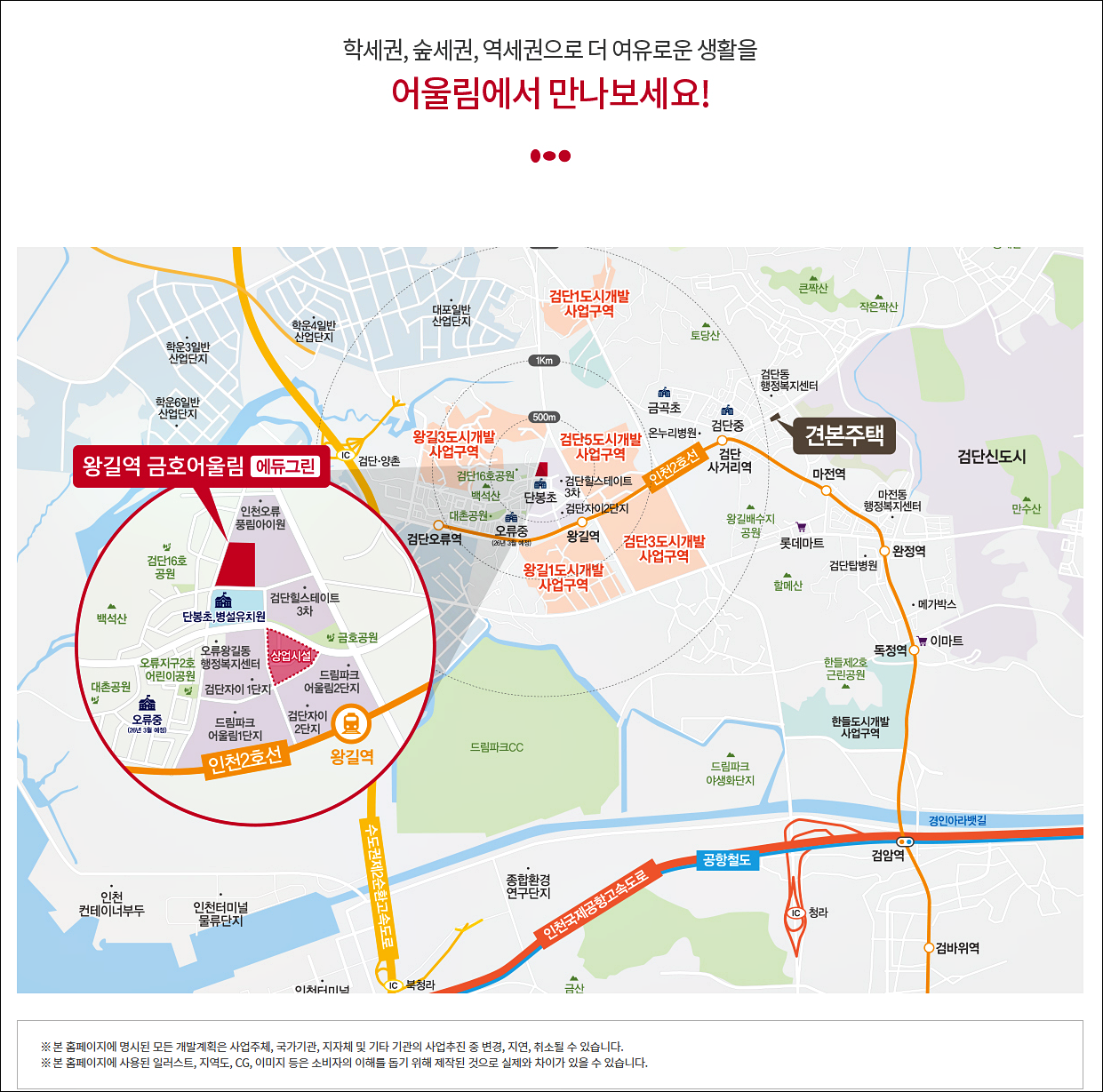 왕길역 금호어울림 에듀그린 사업지 입지 환경을 살펴보겠습니다.