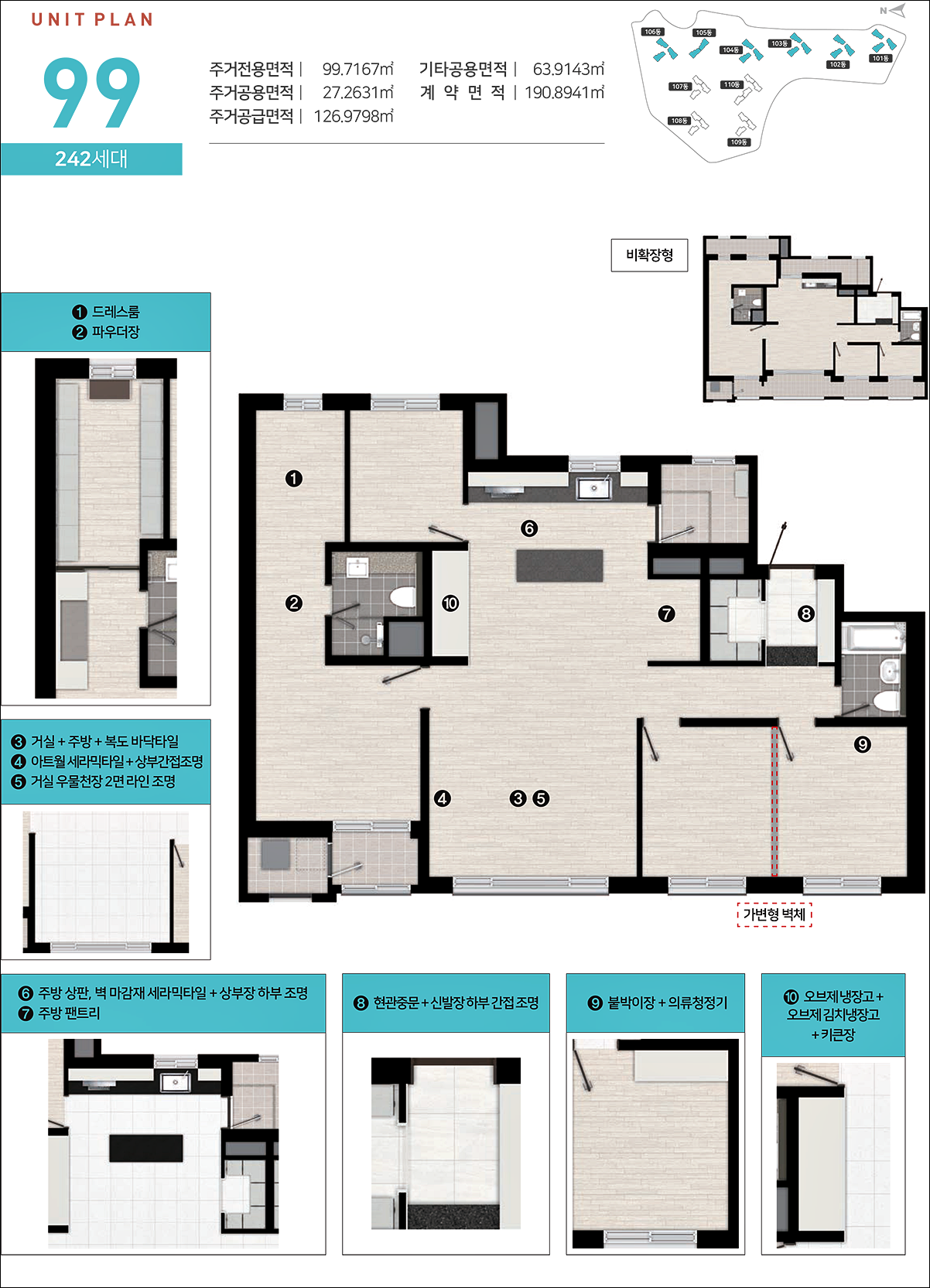 99타입역시 판상형 모델인데요 별다른 확장 없이도 넓은 주방과 거실면적을 가지고 가실수 있는 타입입니다.