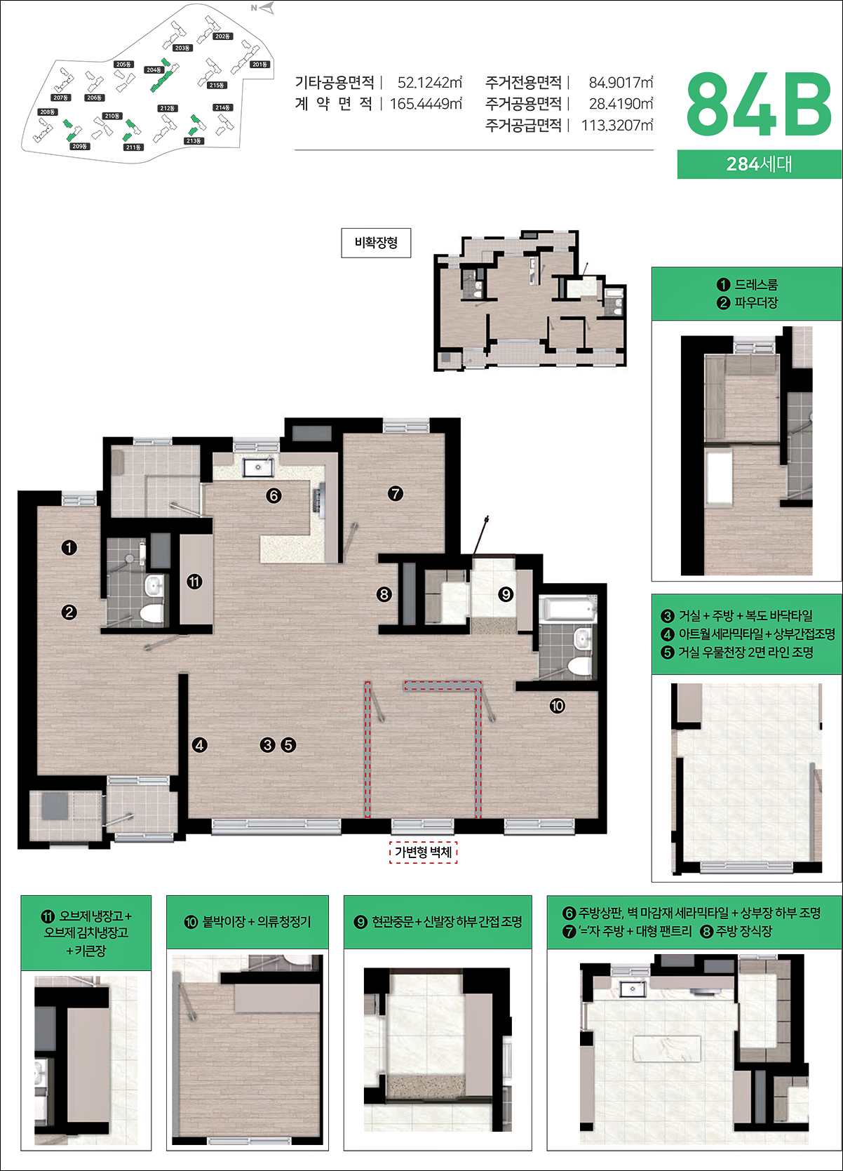 2블록에선 84A 타입 84B 타입을 제외한 나머지 84타입은 기본적으로 알파룸이 설치되지 않습니다.