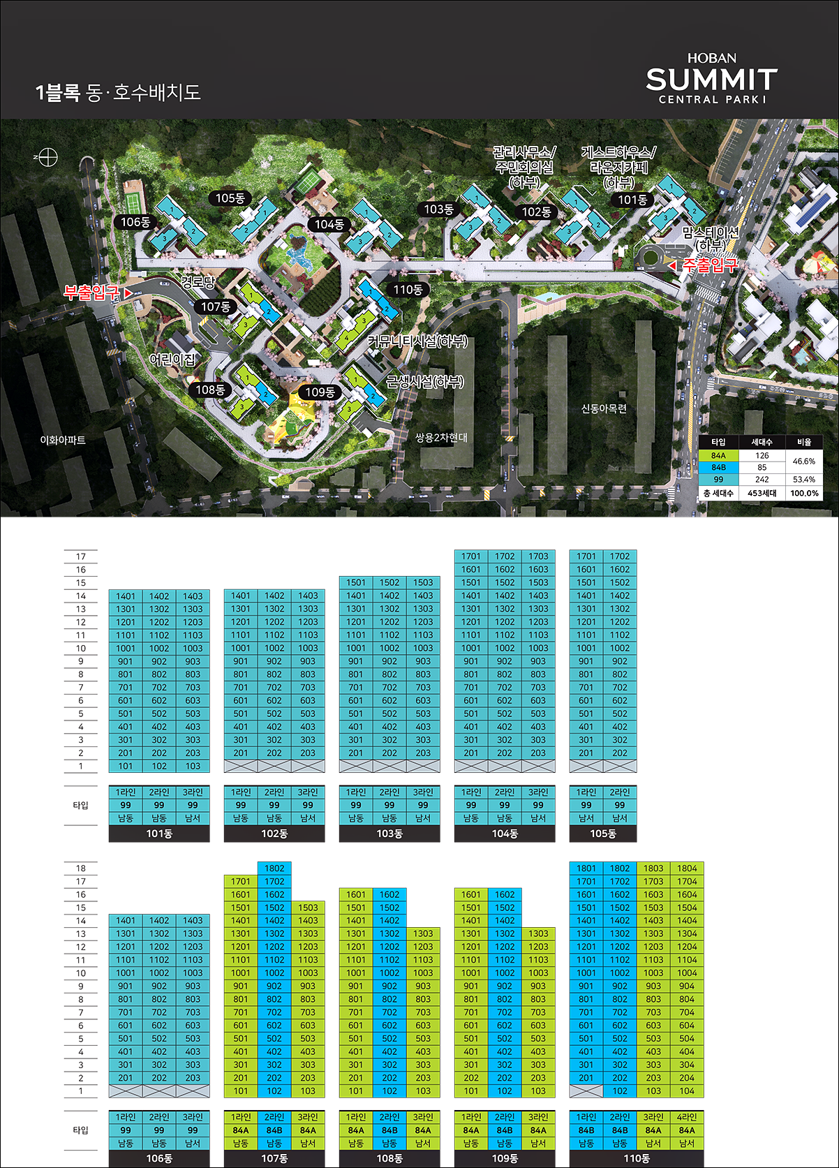 다만 1블록은 453 세대만 구성되어 있어 아무래도 소비자분들의 선택이 2블록 쪽으로 몰리지 않을까 싶습니다.