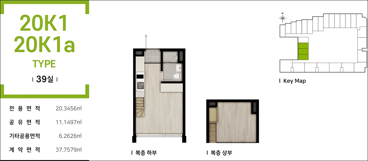 블루핀 임당제니스 오피스텔의 평면도를 살펴보면 전평형이 모두 복층 구조로 설계된 것을 볼 수 있습니다.