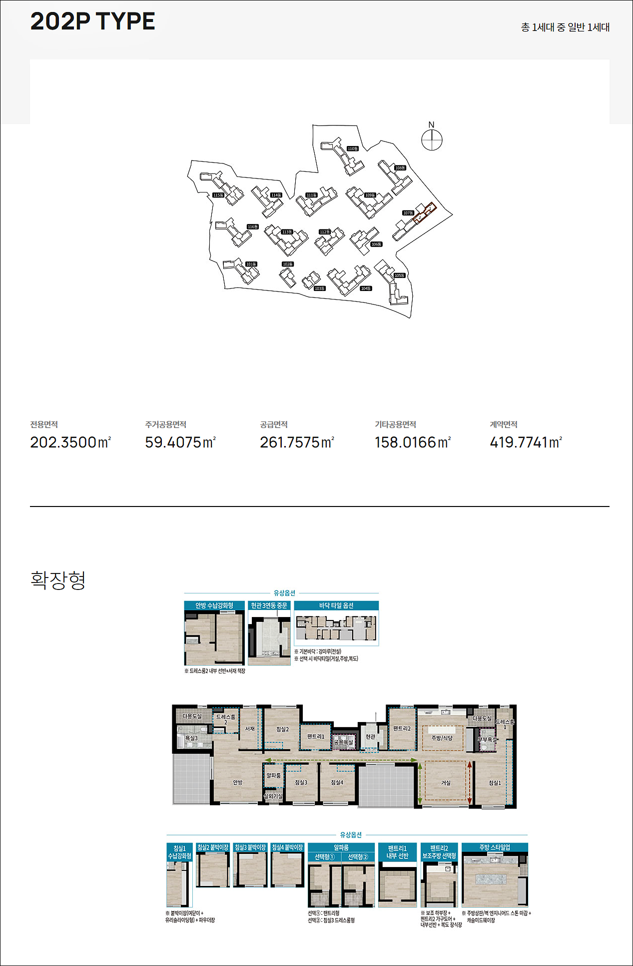 202AP타입은 방을 비롯해서 팬트리와 알파룸, 서재까지 제공되므로 남다른 주거생활이 가능합니다.