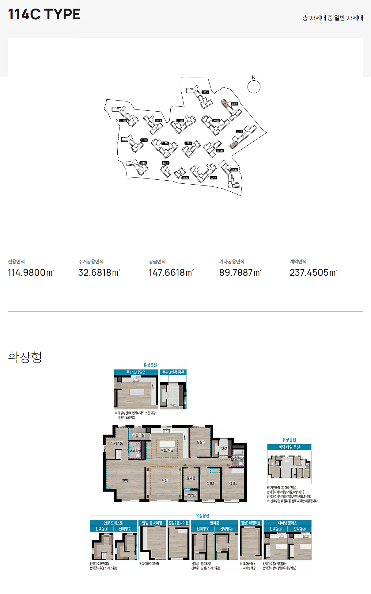 120타입은 방 3개와 알파룸이 제공됩니다.