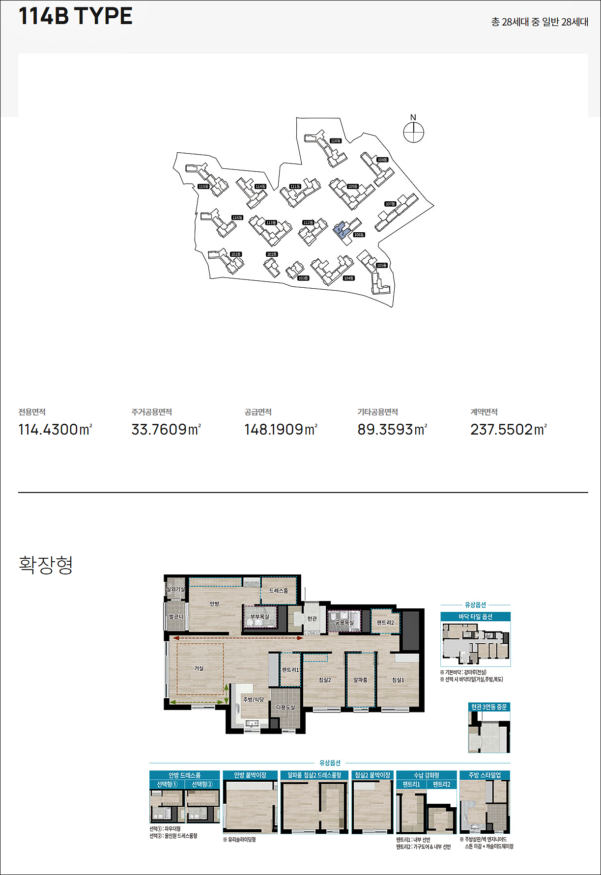 방이 총 3개로 구성되어있고 드레스룸이 다른 타입보다 넓다는 장점을 가지고 있습니다.