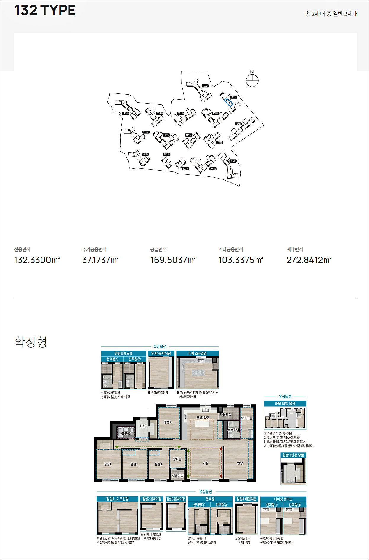 132타입은 방이 4개이고 알파룸까지 제공되고 있습니다.