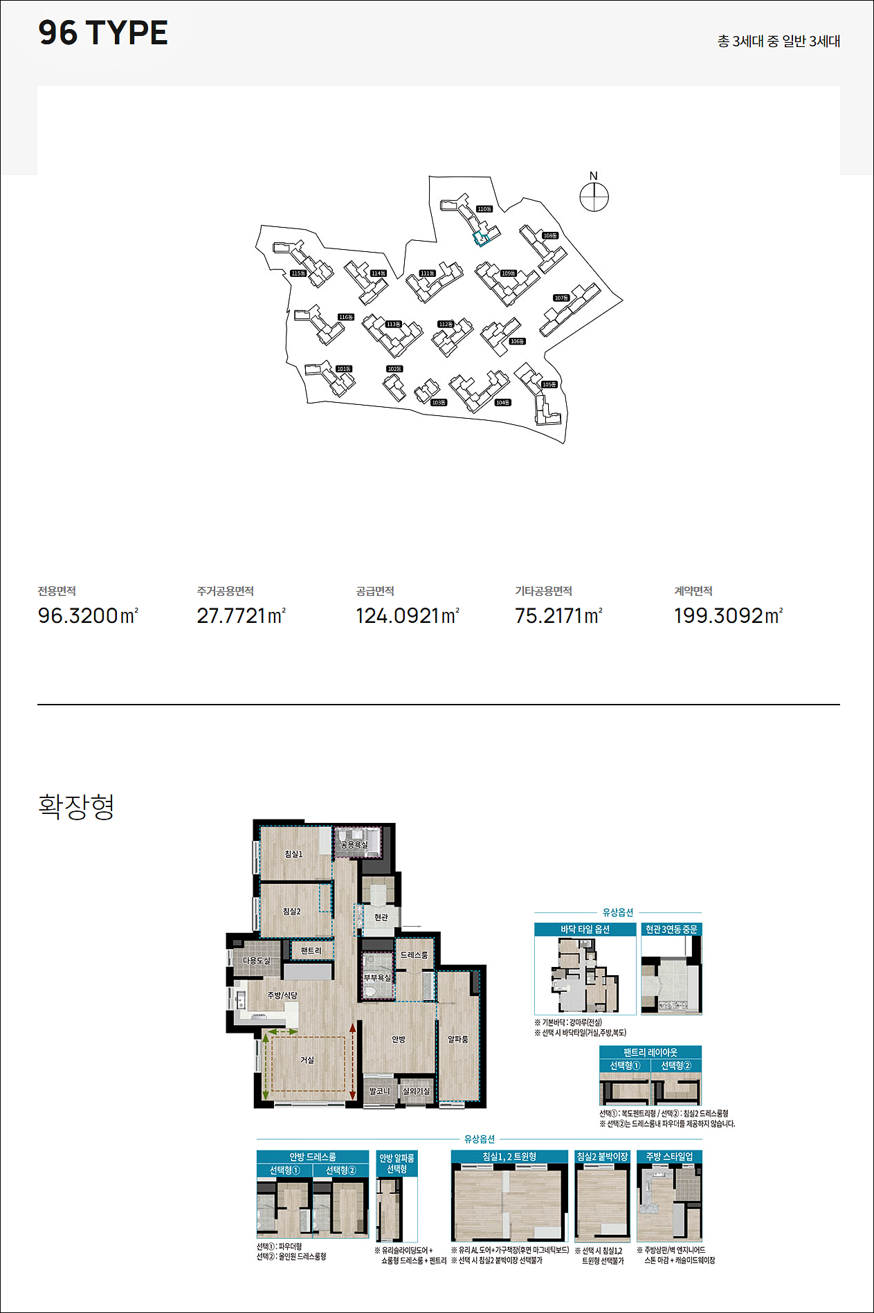 방이 총 3개로 구성되어있고 드레스룸이 다른 타입보다 넓다는 장점을 가지고 있습니다.
