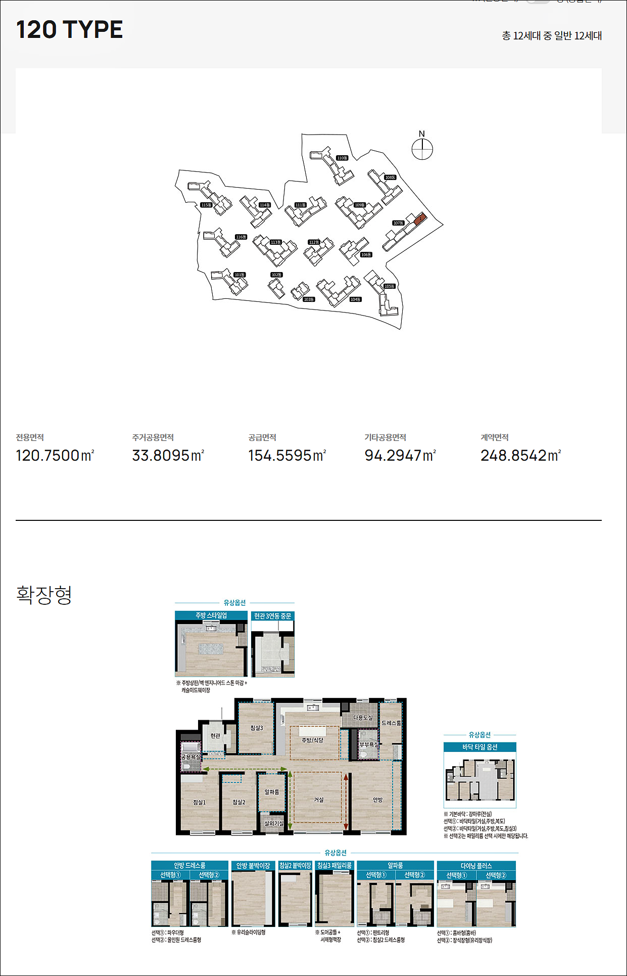 120타입은 방 3개와 알파룸이 제공됩니다.