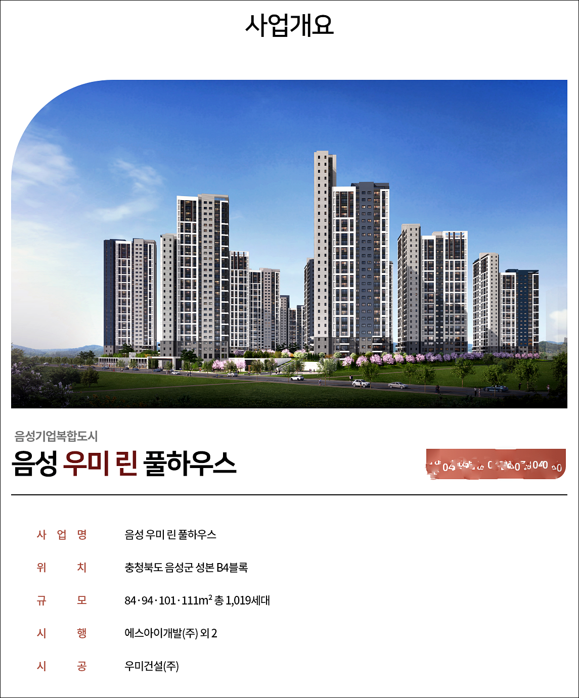 오늘 알아볼 음성 우미린 풀하우스는 성본산업단지와 충북혁신도시의 풍부한 일자리 수요를 기반으로 높은 수요가 기대되는 총 1,019세대의 대형단지입니다.