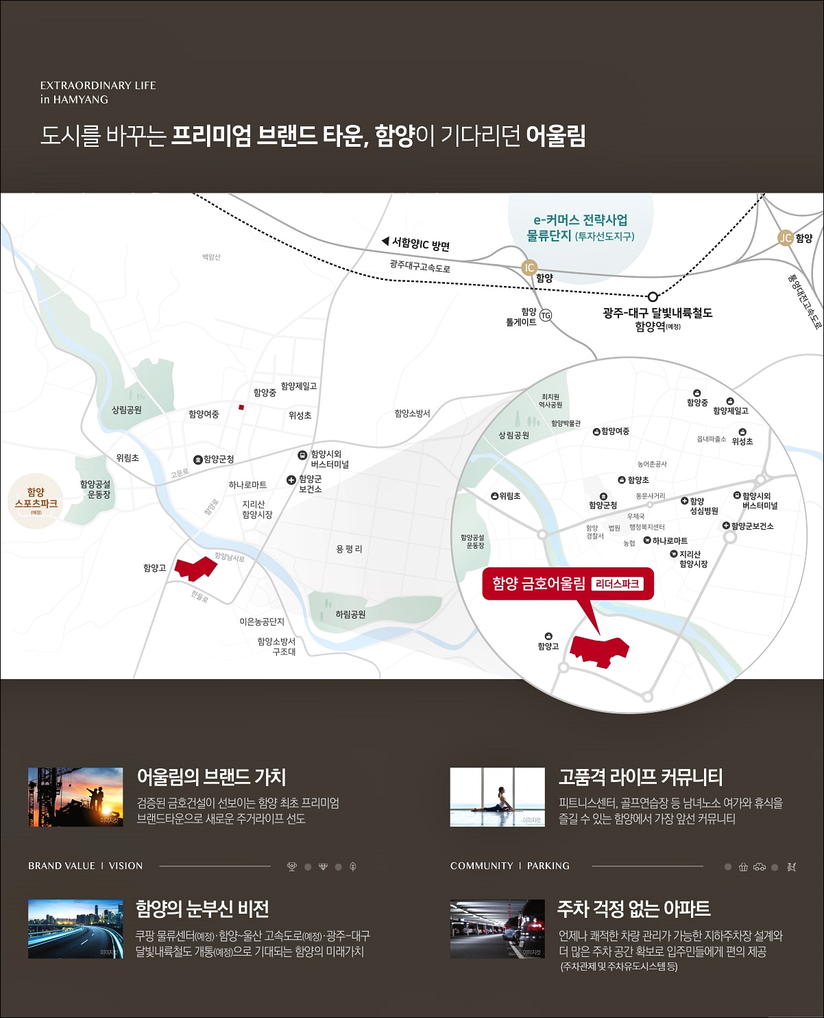 함양 금호어울림은 함양군에 기존 원도심 쪽이 아닌 함양고 인근에 위치하고 있습니다.