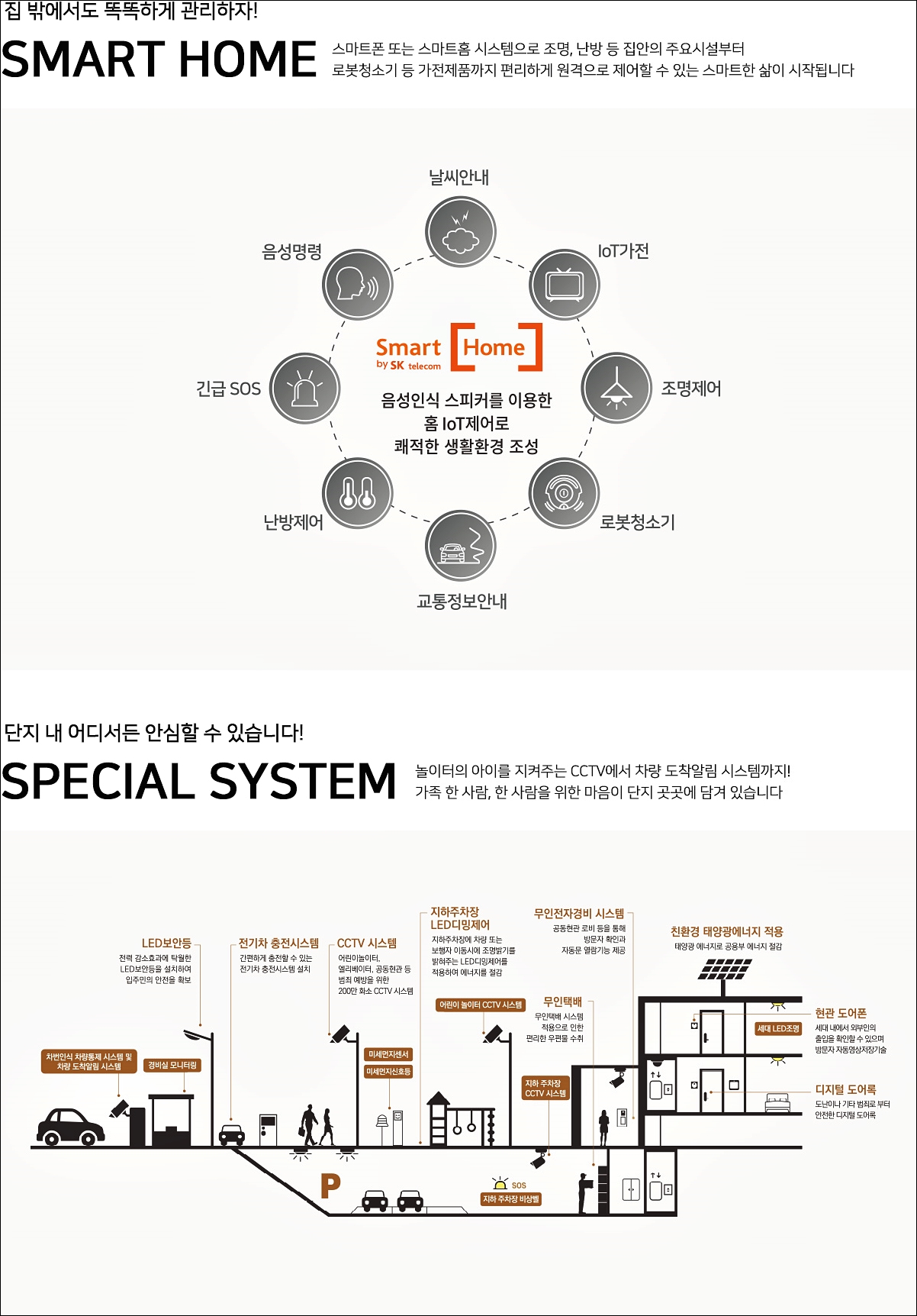 음성인식 스피커를 이요하여 난방제어, 교통정보안내, 로봇청소기, 조명기기 등을 음성으로 제어가 가능합니다.
