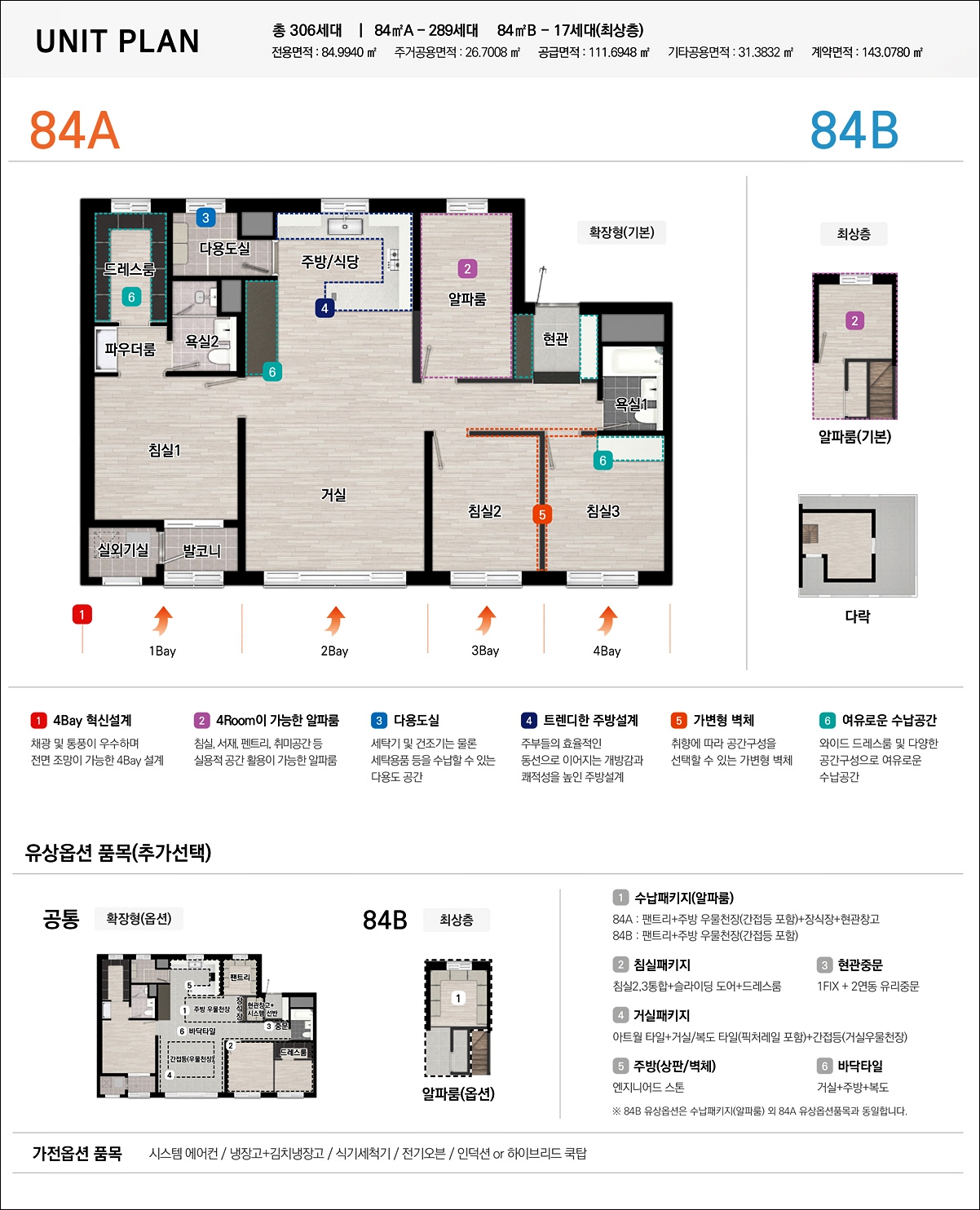 84B 타입은 펜트하우스 모델로써 다락방이 추가로 배치가 됩니다.