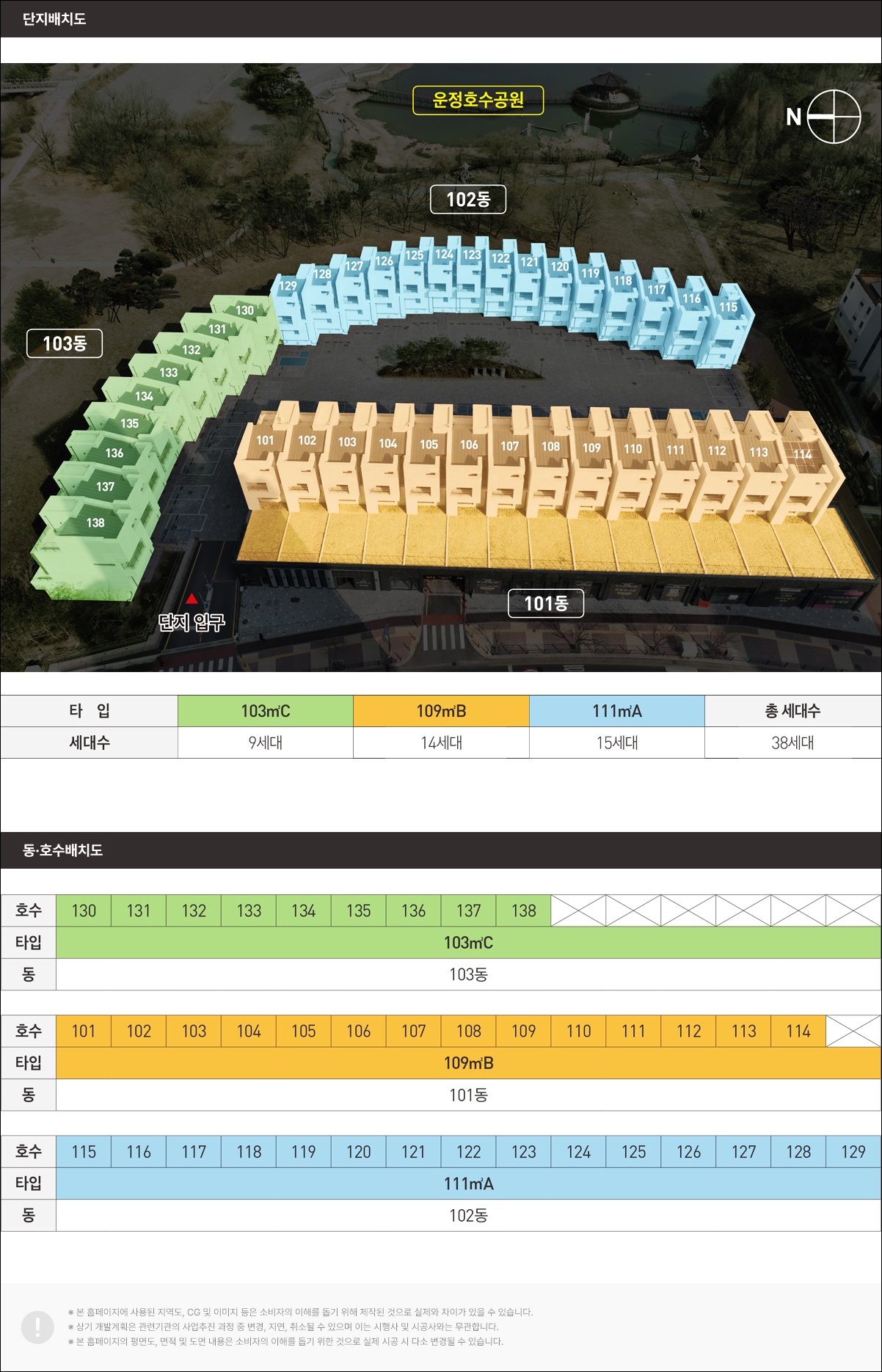 111 A타입, 109 B타입, 103 C타입 / 전체 38세대