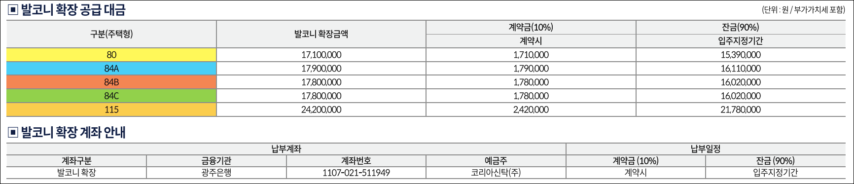 80타입 / 84타입 / 115타입