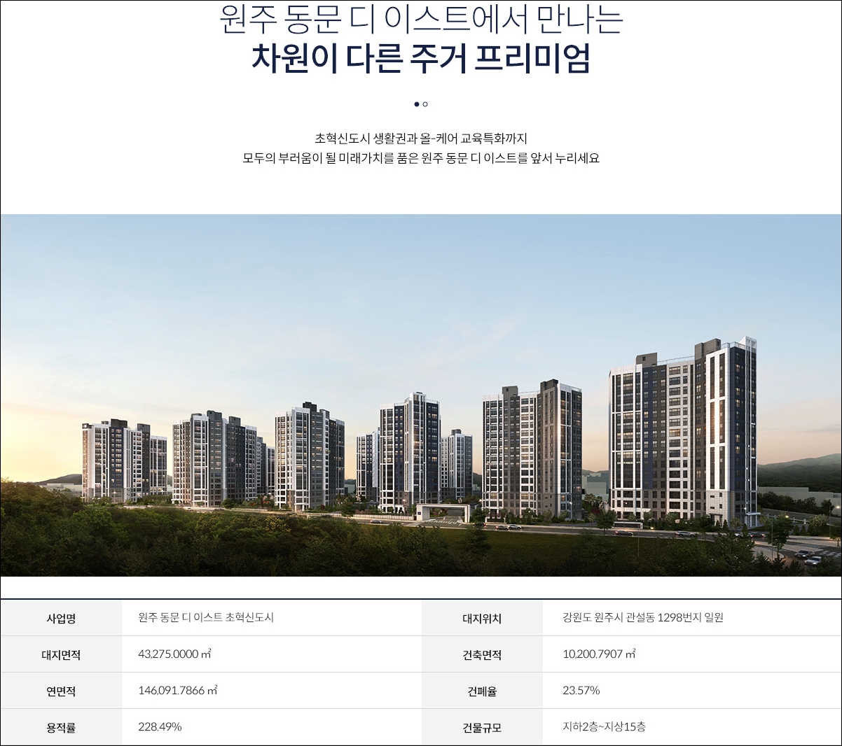 그간 남쪽 생활권의 발전은 더뎠지만 이번 원주 동문 디이스트와 신주거문화타운의 분양을 통해 4대 생활권을 완성하려 합니다.