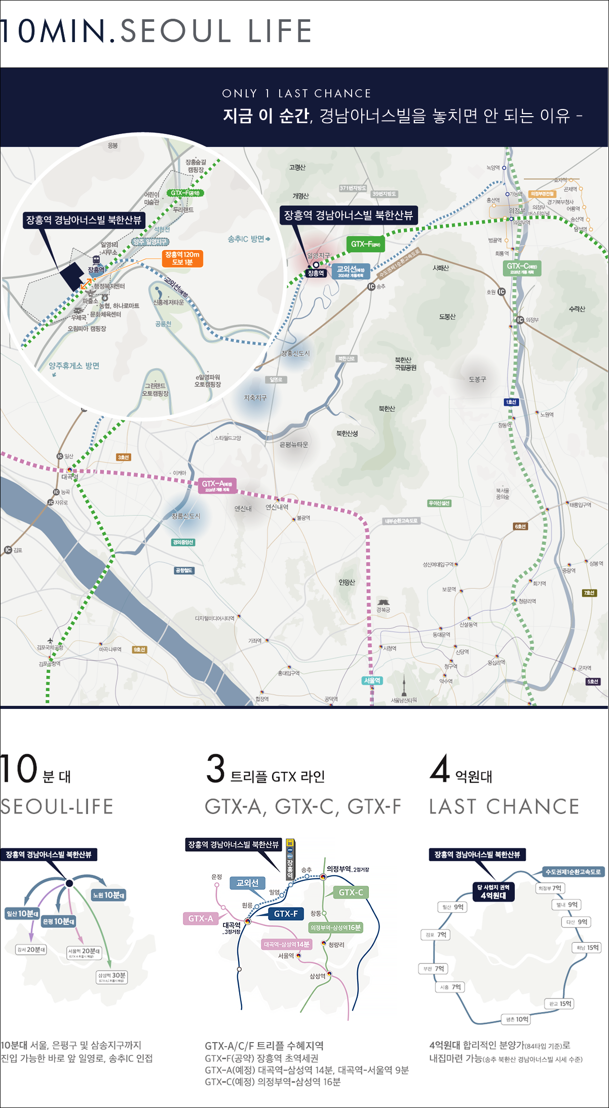장흥역 경남아너스빌 북한산뷰은 수도권 주요 지역에 10분대로 주파할 수 있다는 장점이 존재합니다.