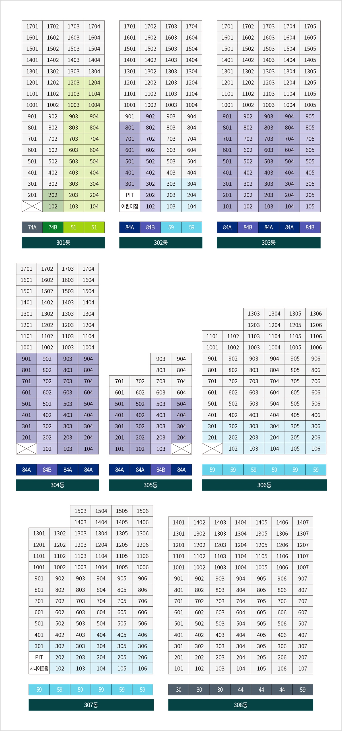 51타입 / 59타입 / 74B 타입 / 84A 타입 / 84B 타입