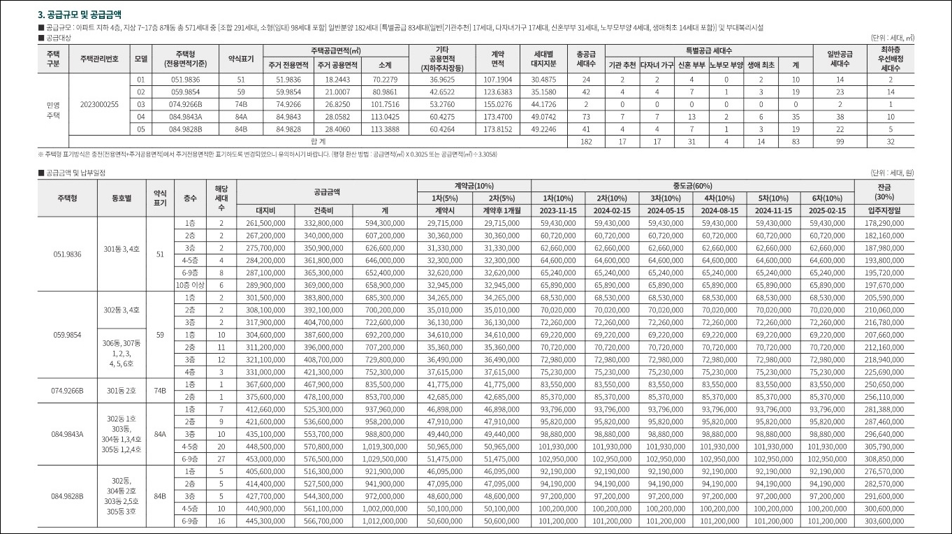 전체 571세대 중 182세대를 일반분양 모집할 예정입니다.