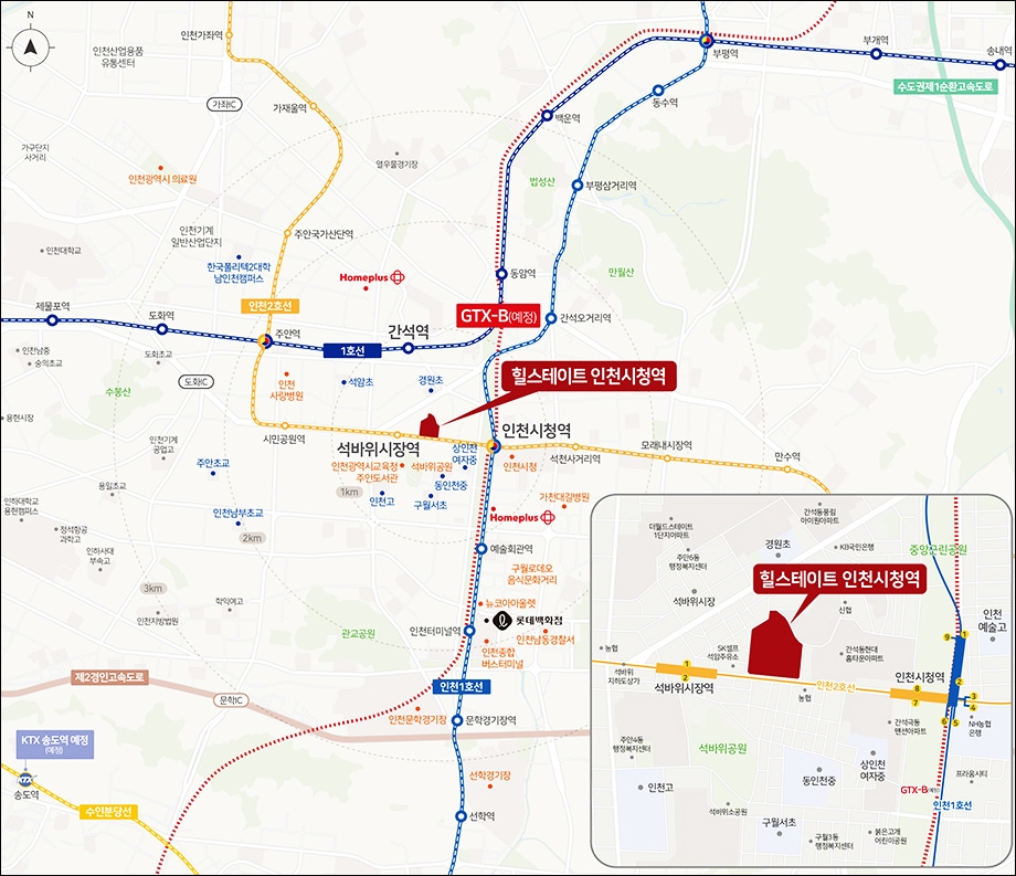 인천 1호선과 2호선이 교차할 뿐만 아니라 gtx-b가 들어선다는 장점이 존재합니다.