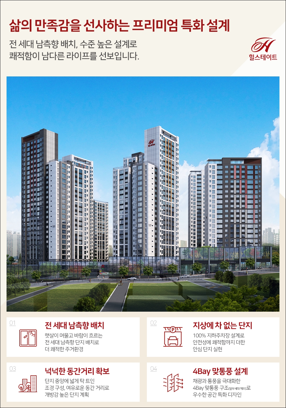 100퍼센트 지하주차장 설계를 통해 쾌적함과 안정감을 동시에 느껴보시기 바랍니다.