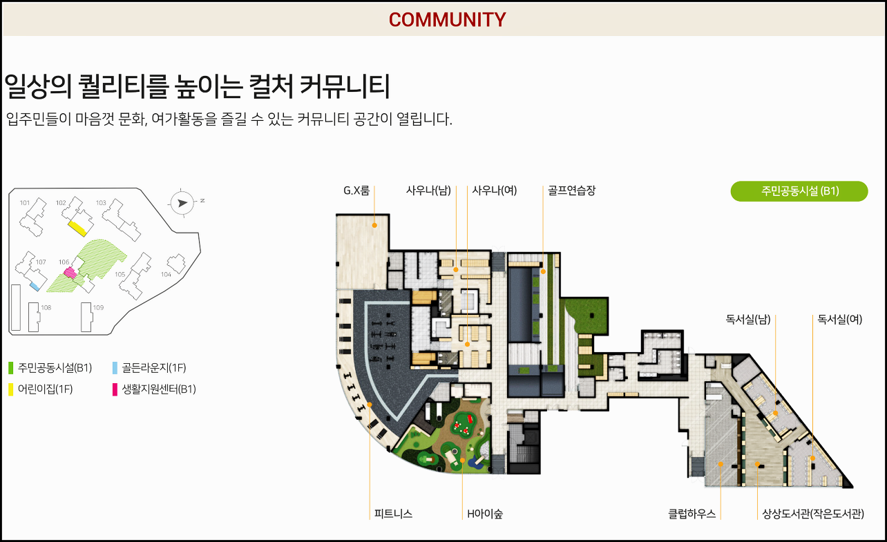 커뮤니티 시설에 어떠한 시설들이 들어오는지도 체크해보아야할 부분입니다.