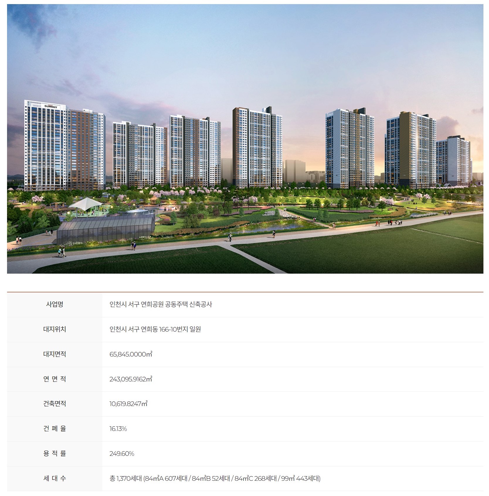 호반건설 에서 인천 연희공원 인근에 대규모 아파트를 시공하고 있습니다.