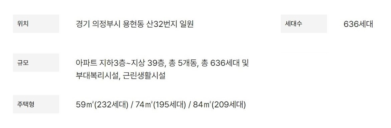 아파트 지하3층~지상39층, 총 5개동, 총 636세대 및 부대복리시설, 근린생활시설