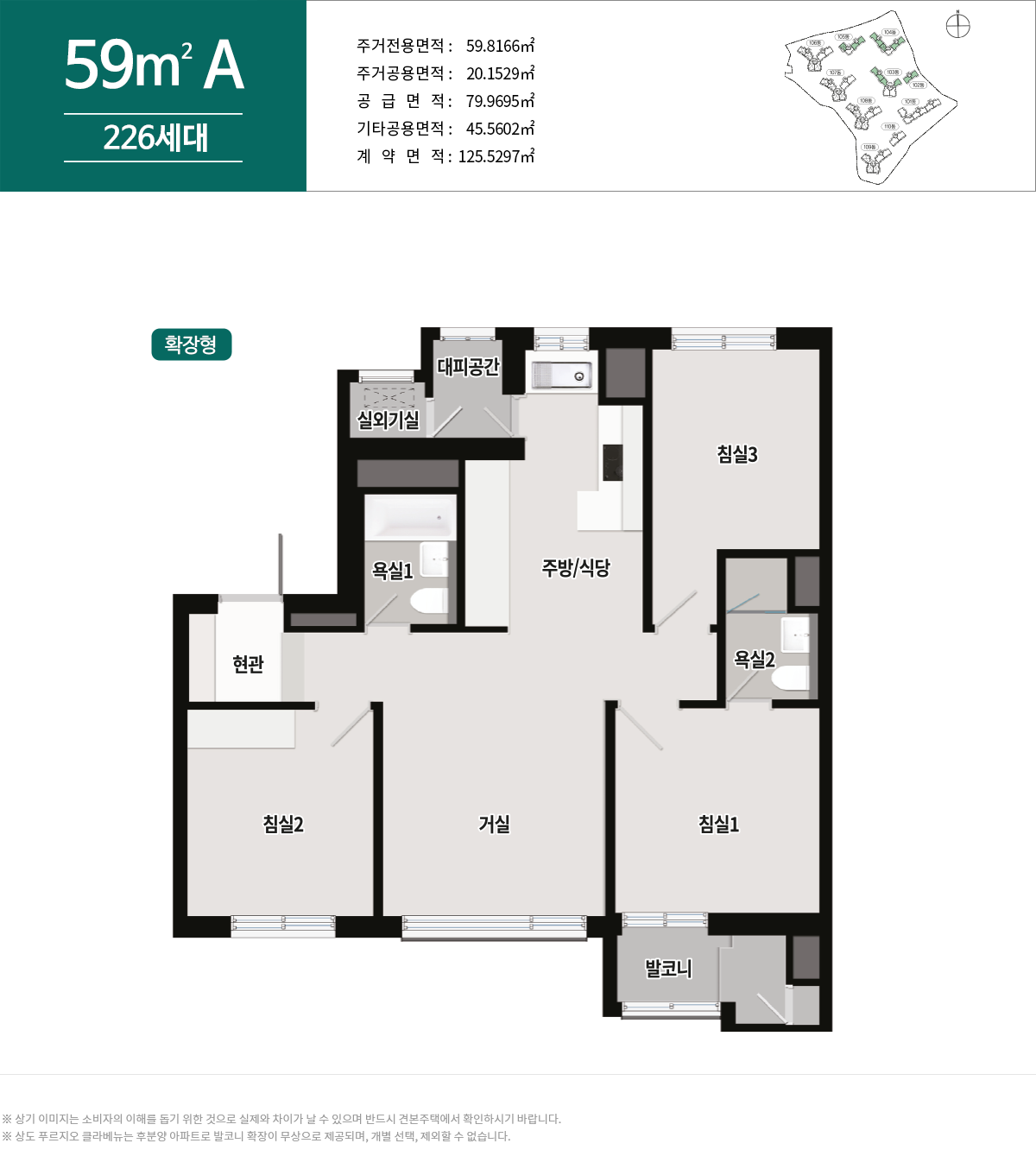 59㎡ 타입 / 74㎡ 타입 / 84 ㎡ 타입