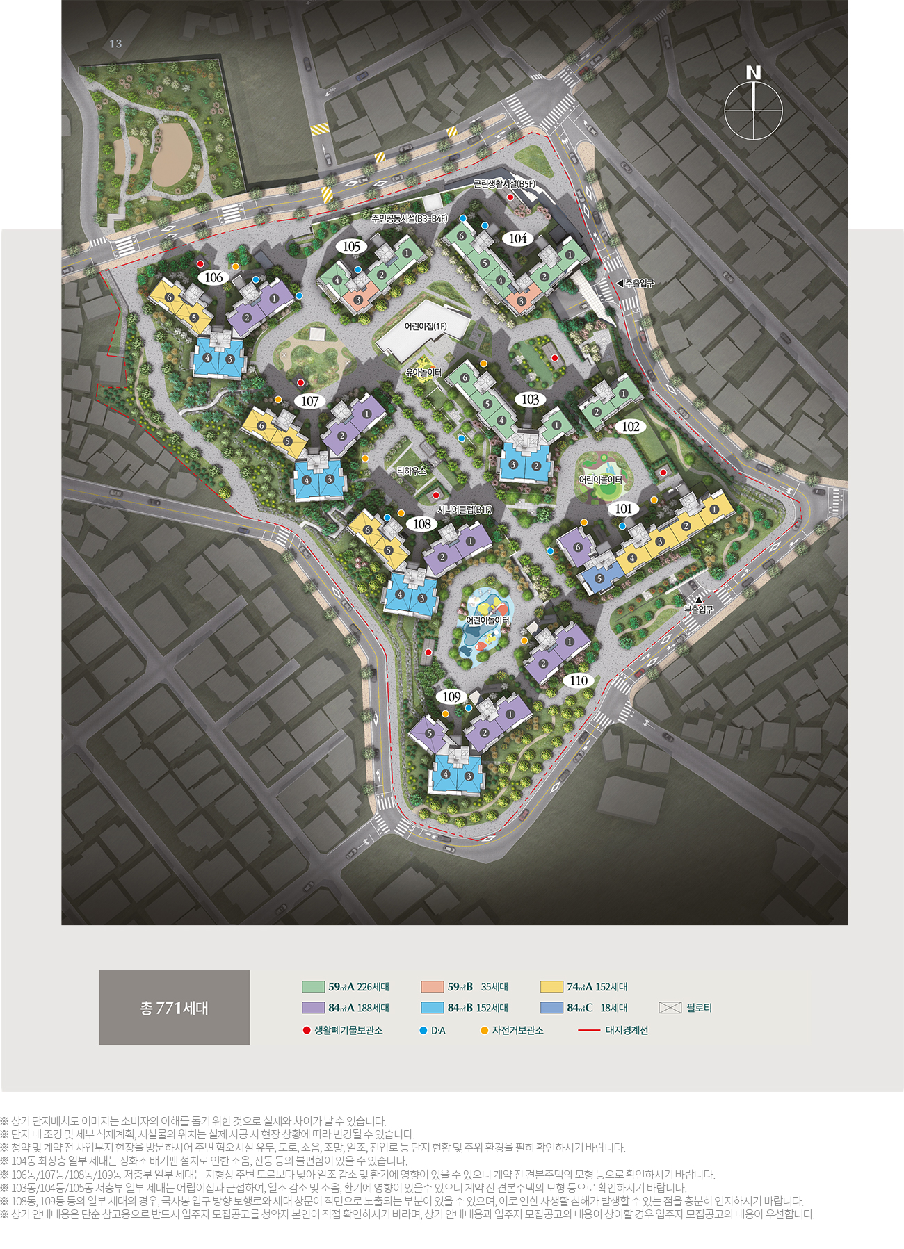 지하 5층 ~ 지상 18층 / 총 10개동 / 전체 세대수 771세대