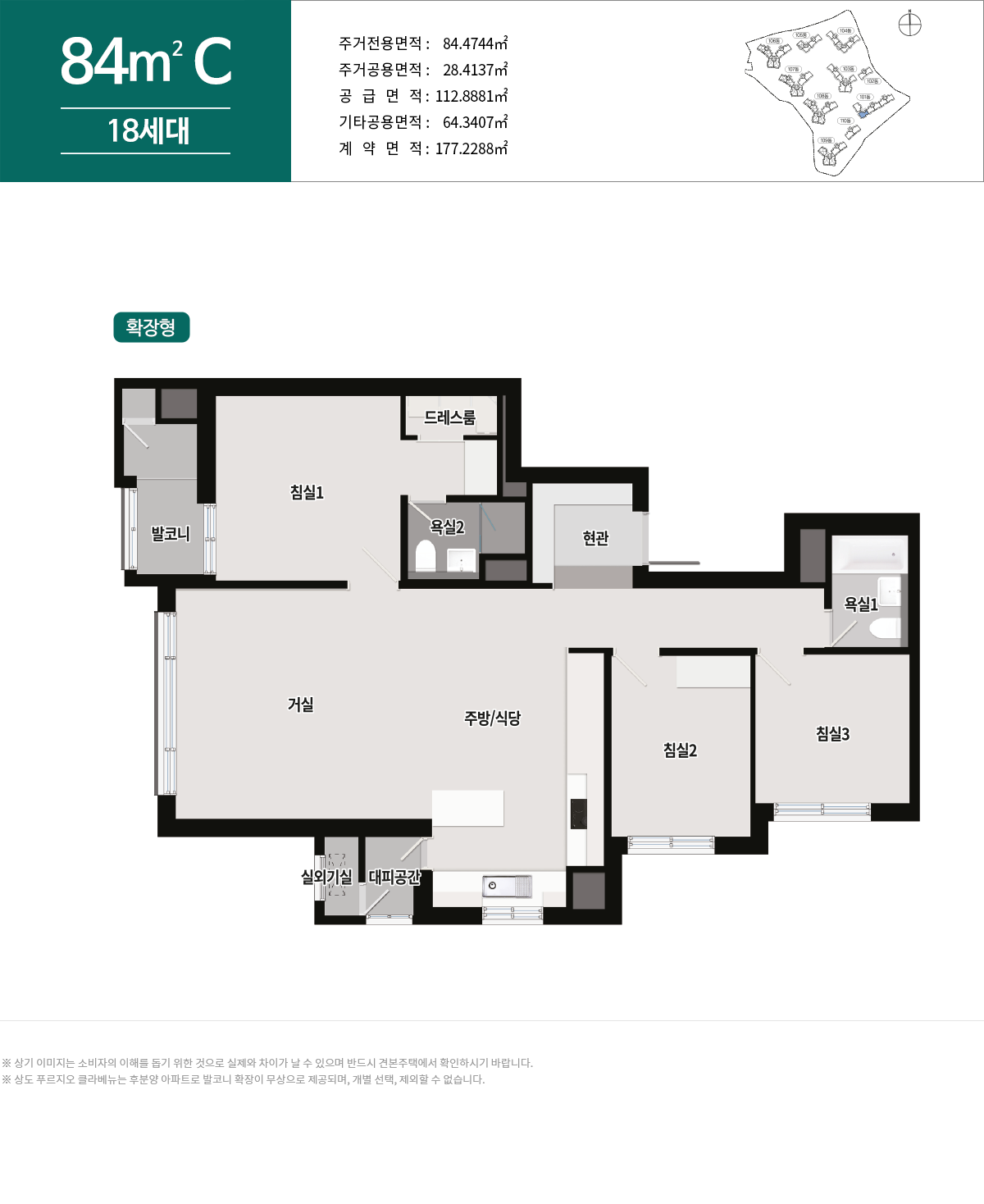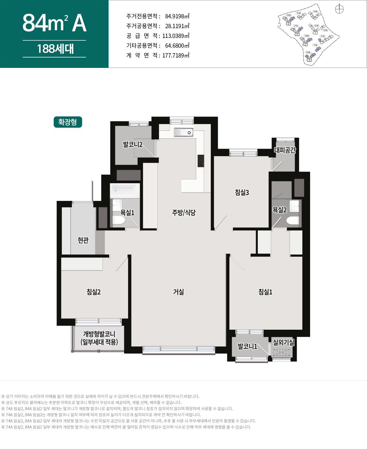 59㎡ 타입 / 74㎡ 타입 / 84 ㎡ 타입