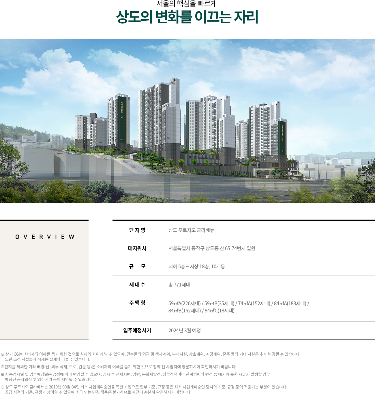 지하 5층 ~ 지상 18층 / 총 10개동 / 전체 세대수 771세대
