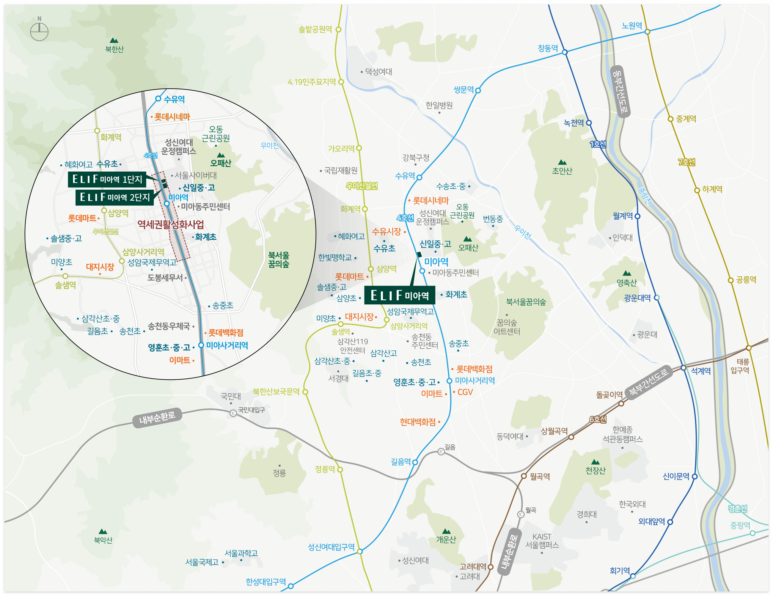 엘리프 미아역은 미아동 194-2번지 인근에 위치하고 있습니다.