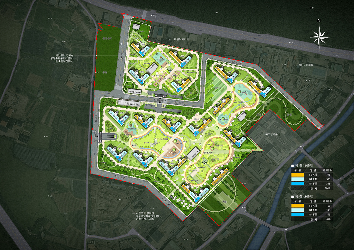 전체 세대수는 1690세대로 예정 되어있고 총 13개동 으로 설계되었습니다.