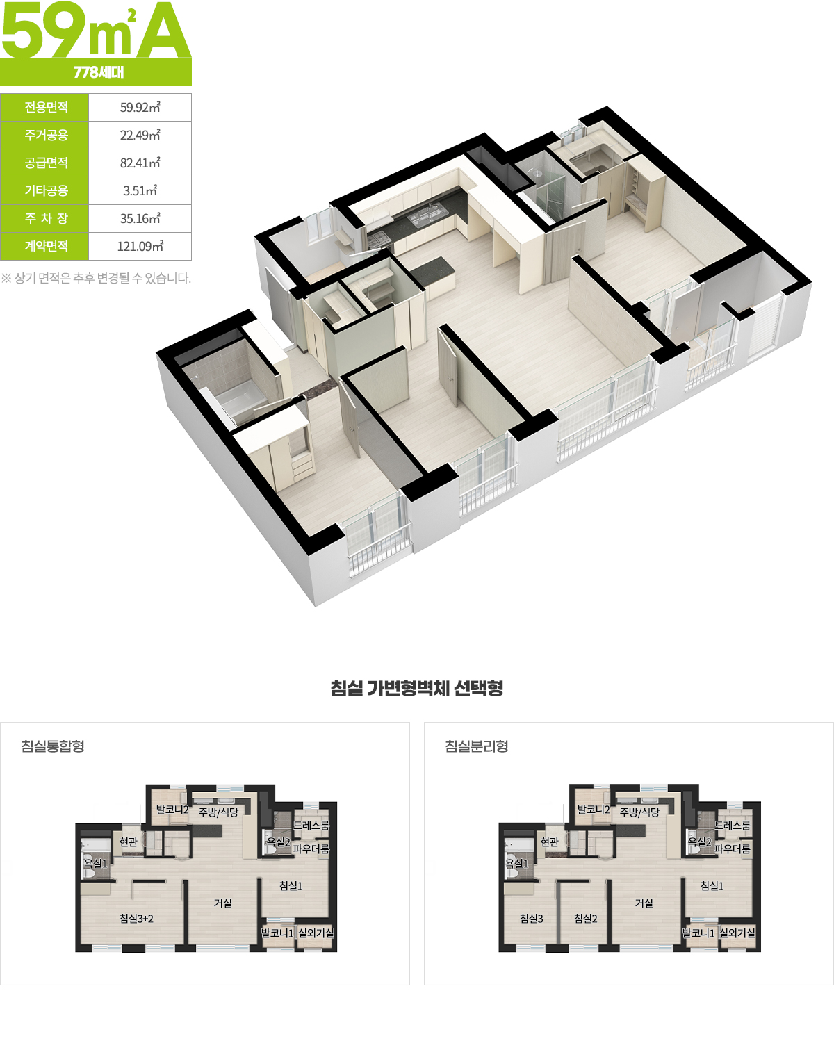 전용면적 59type 778세대, 84type 912세대 등 선호도 높은 중소형 평형으로 구성됩니다.