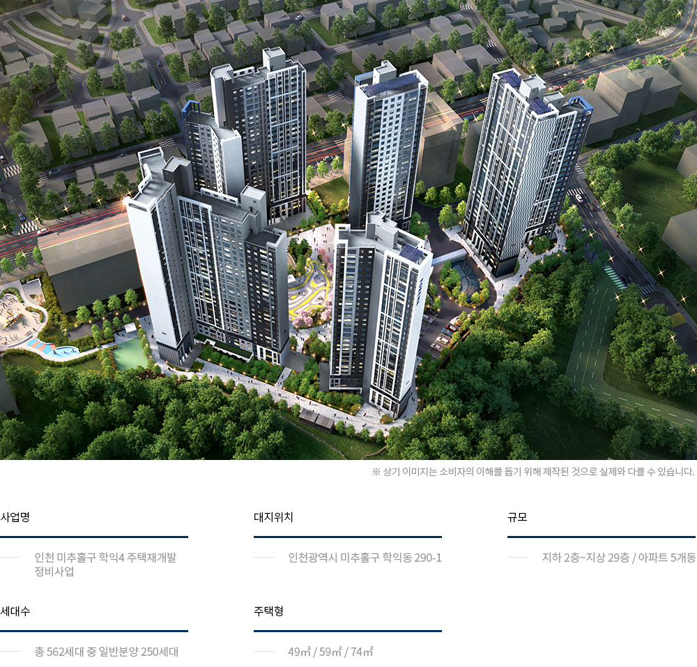 포레나 인천학익은 인천광역시 미추홀구 학익동에 지하 2층~지상 최고 29층, 5개 동, 총 562가구 규모로 조성하며 이 중 250가구를 일반 분양하게 됩니다.
