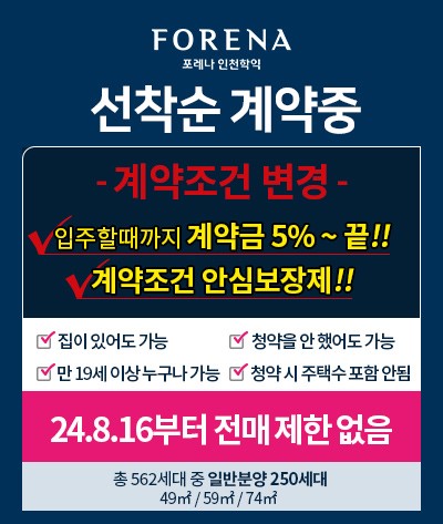 이상 포레나 인천학익 분양정보 안내를 마치겠습니다.