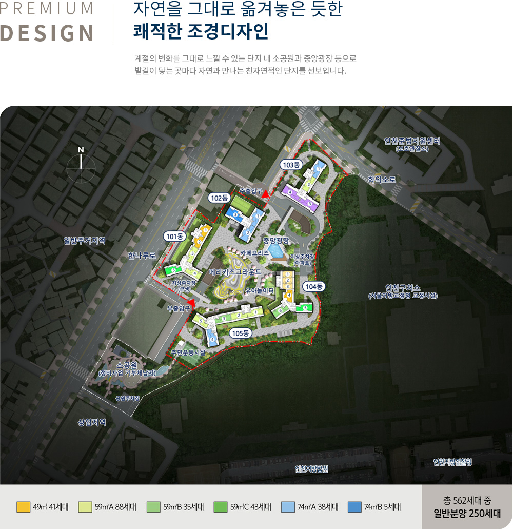 전 세대 남향 위주 배치를 통해 채광과 통풍을 극대화했고 넓은 동 간 거리로 조경 공간을 최대한 확보한 공원형 단지로 조성할 예정입니다.