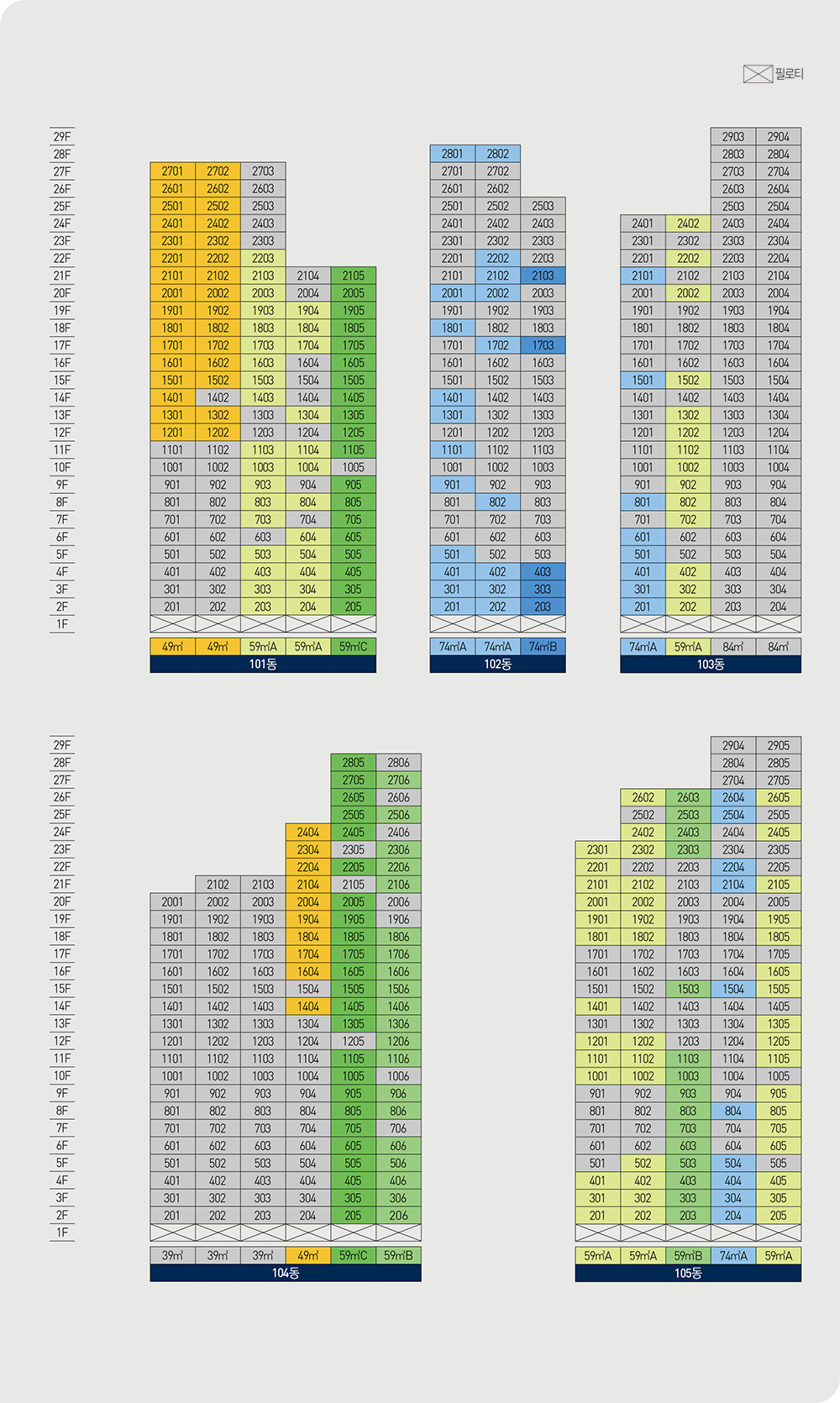 전 타입 판상형 4베이(Bay) 위주 설계가 적용돼 공간활용도를 높였고, 49타입의 경우는 소형이지만 3베이 구조를 적용해 면적을 극대화했습니다.