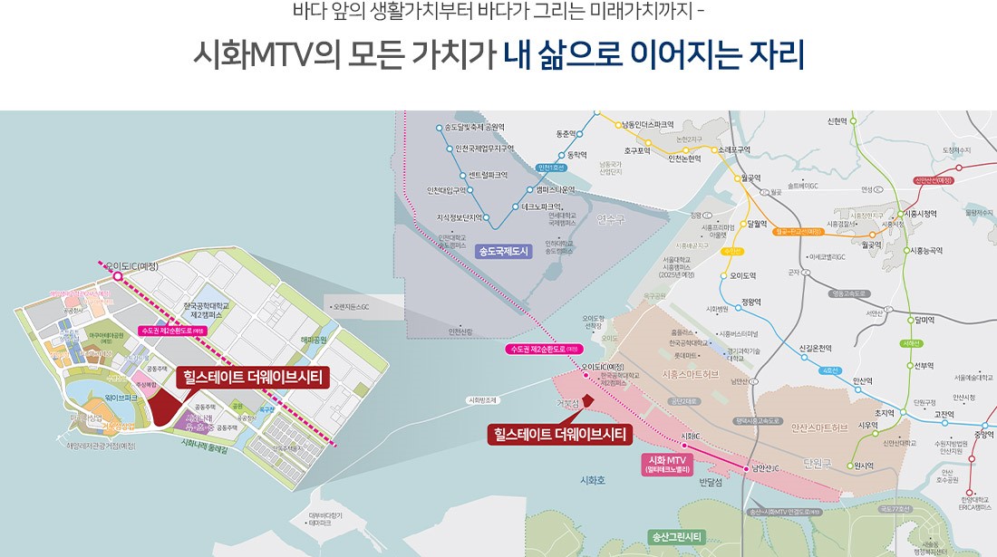 마지막으로 시화 MTV 기반시설들 예를들면 웨이브파크, 스트리트몰, 시화나래 둘레길 등을 이용하기 용이하다는 점 또한 장점 입니다.