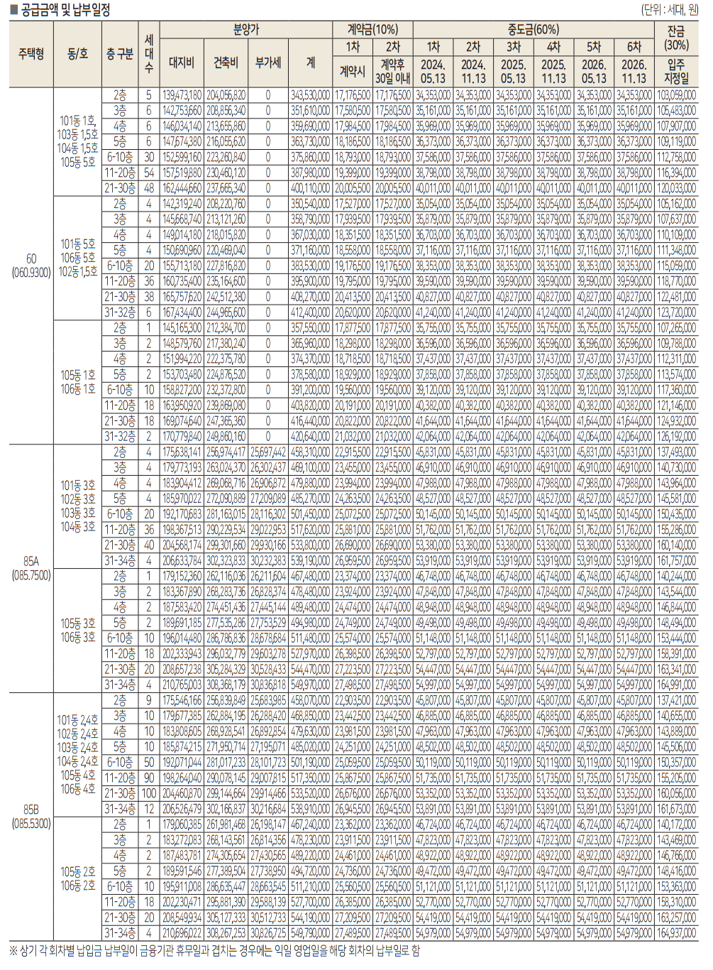 계약금 10% ㅡ> 중도금대출 60% (이자후불제) ㅡ> 입주시 잔금 30% 순으로 진행됩니다.