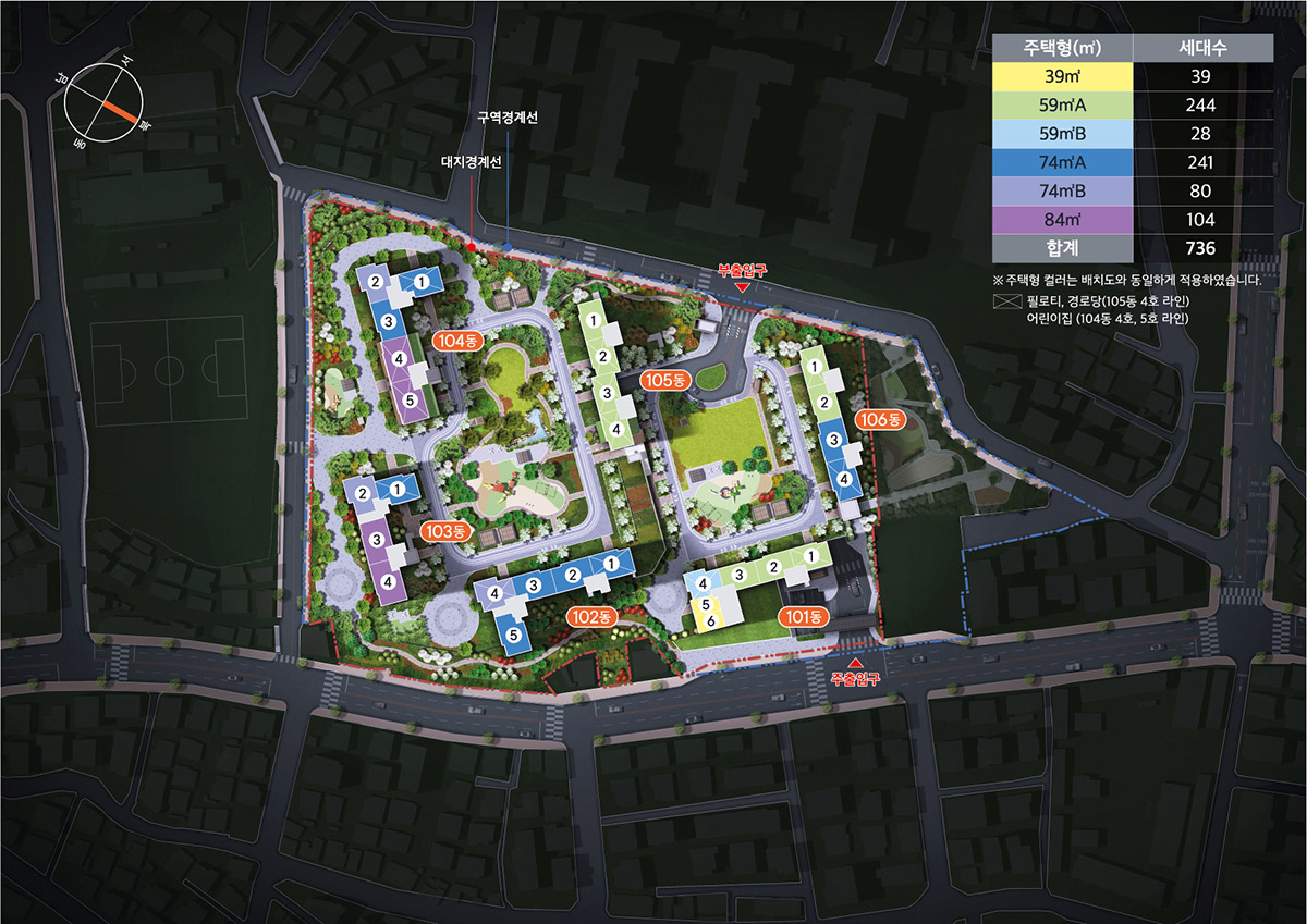 일반분양은 59·74·84㎡로, 1인 가구부터 3·4인 가구까지 거주하기에 적합한 평면으로 설계되었습니다.