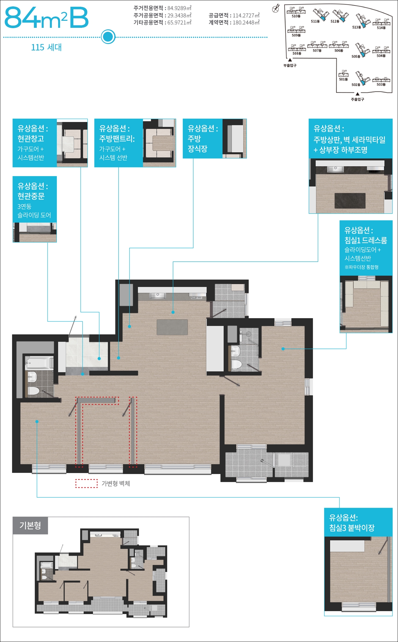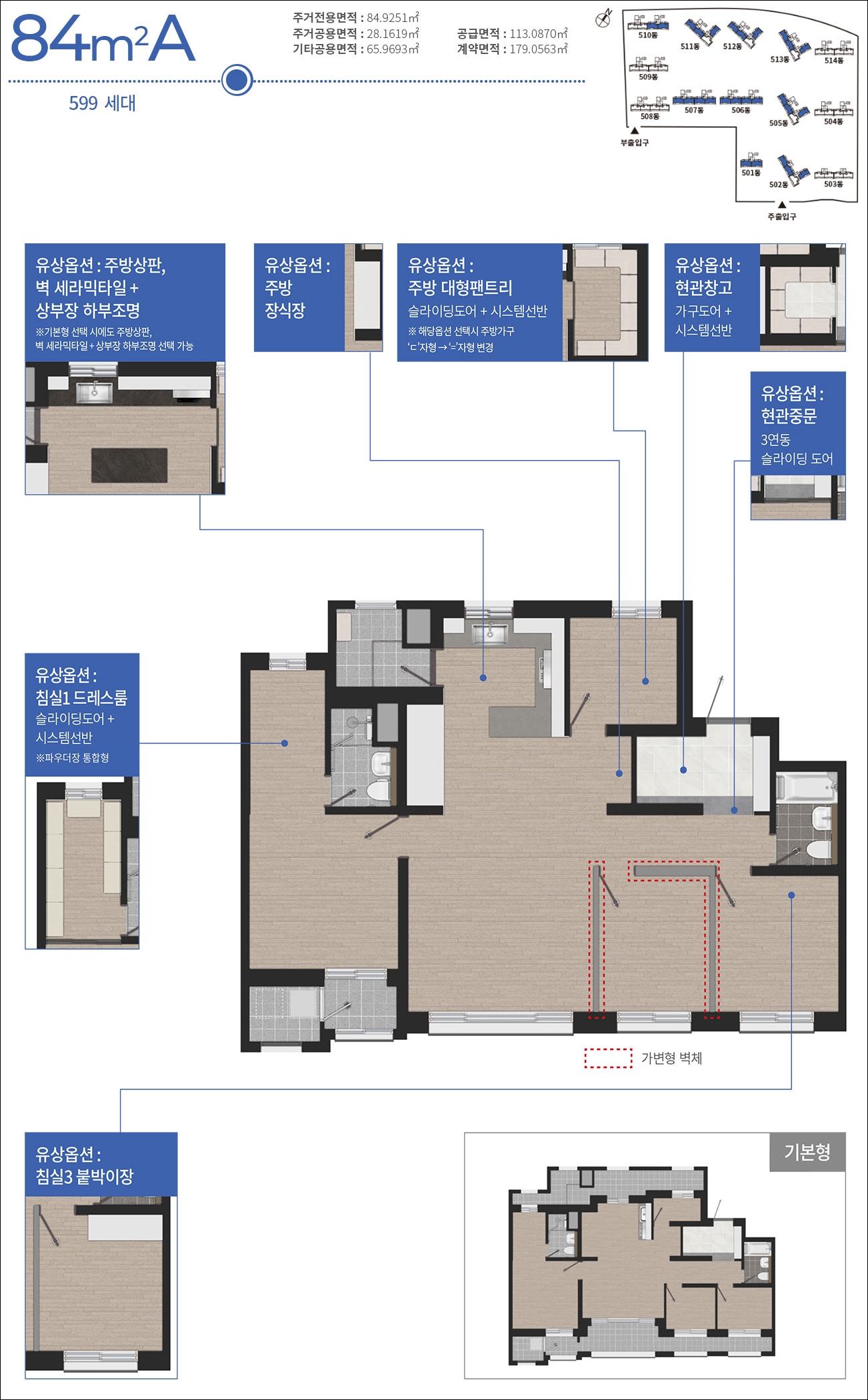 드레스룸 등의 유상옵션을, 84m²A 타입은