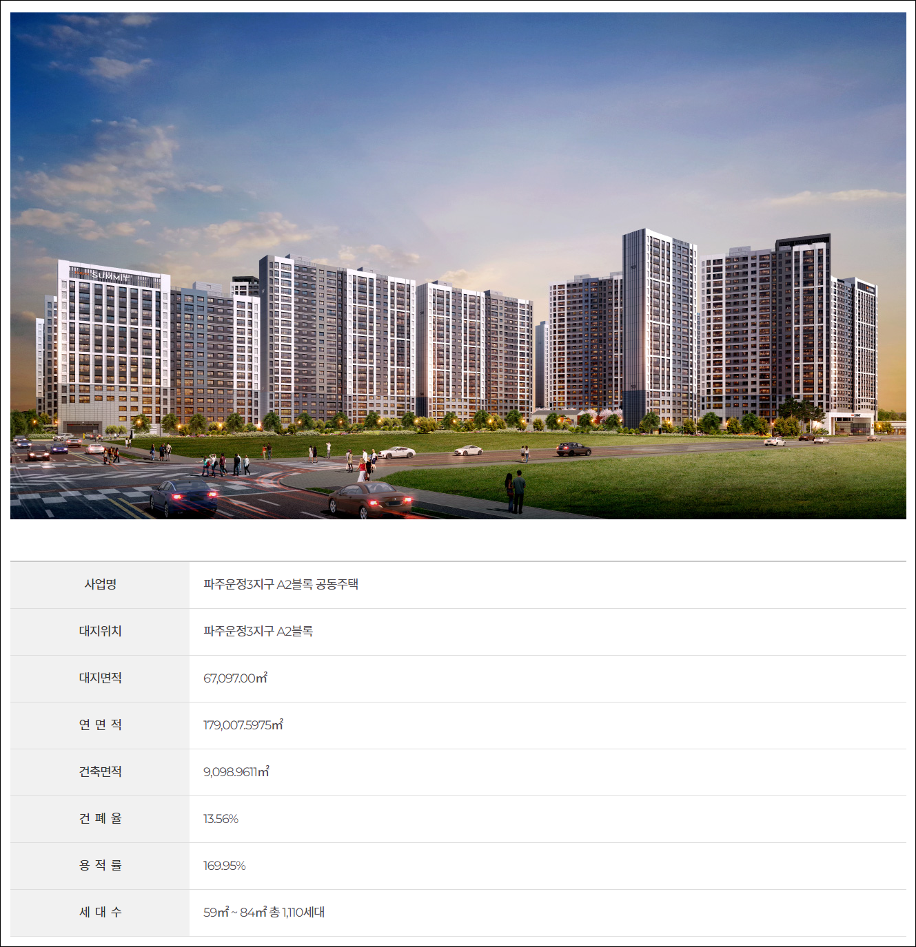 운정호반써밋은 총 1,110세대로 구성되어 있으며,